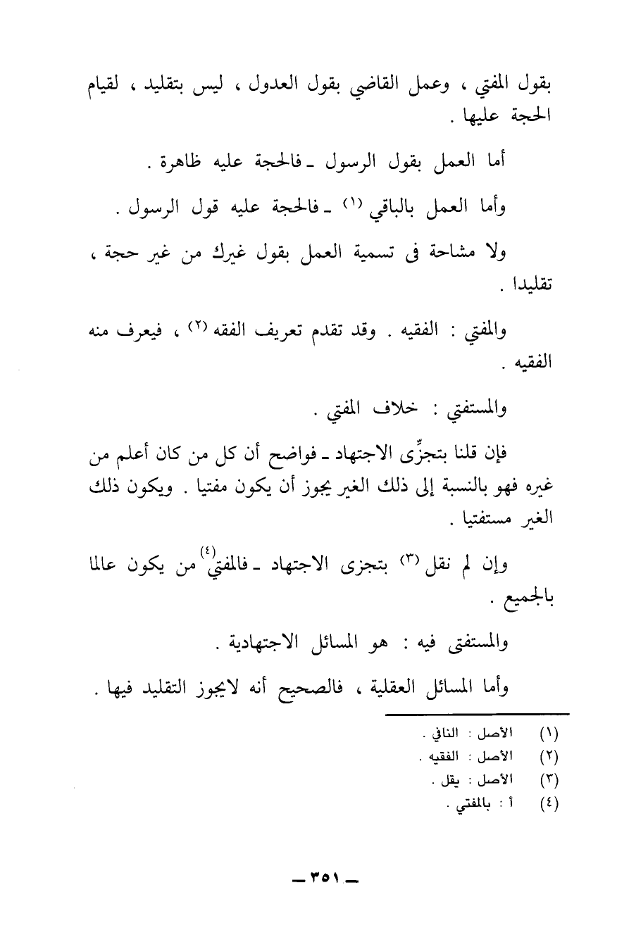 ش - اخْتَلَفُوا فِي جَوَازِ التَّقْلِيدِ فِي الْعَقْلِيَّاتِ، أَيْ فِي الْمَسَائِلِ الْأُصُولِيَّةِ الْمُتَعَلِّقَةِ بِالِاعْتِقَادِ، كَوُجُودِ الْبَارِي وَصِفَاتِهِ.