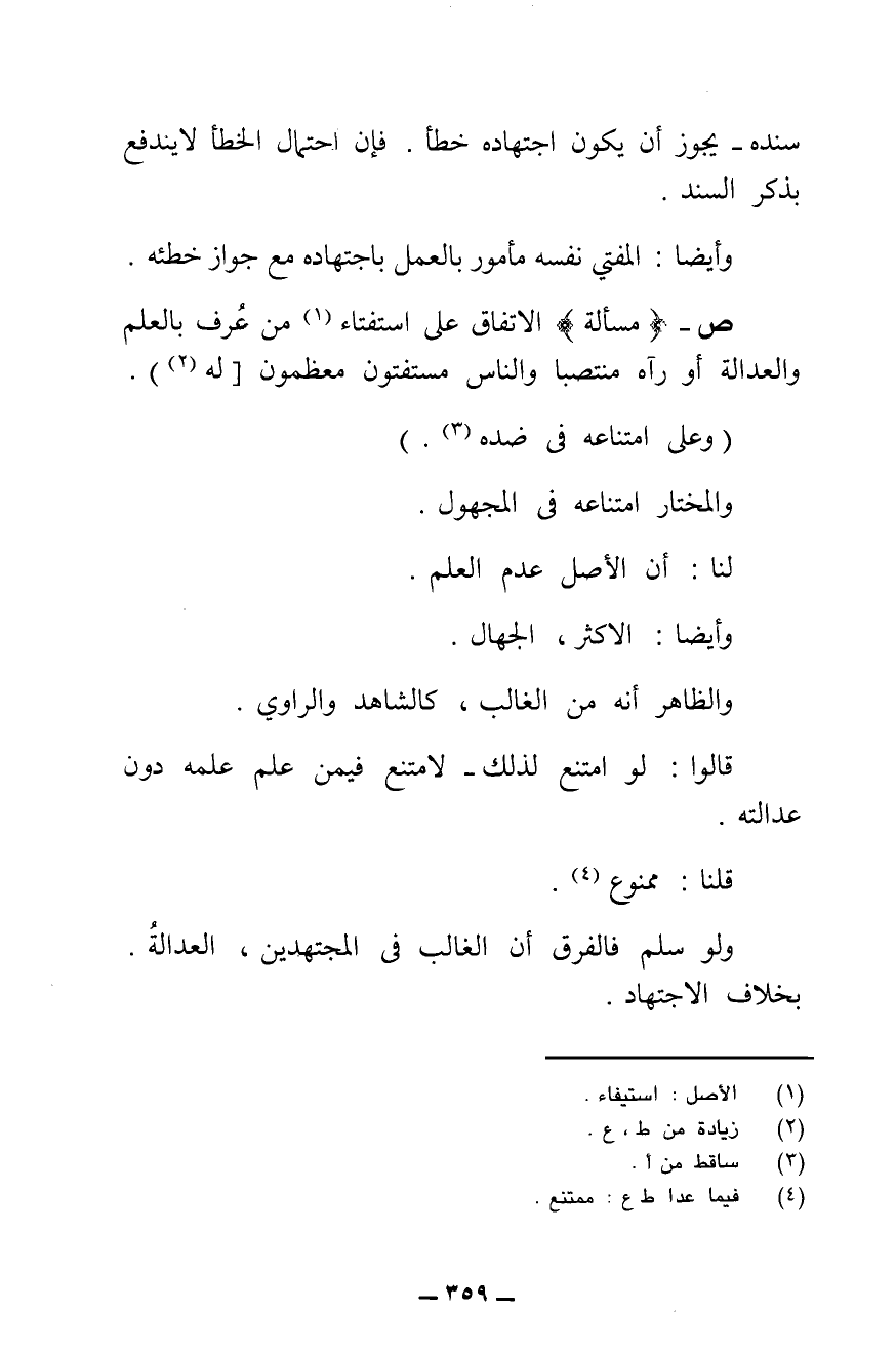 سَنَدَهُ، يَجُوزُ أَنْ يَكُونَ اجْتِهَادُهُ خَطَأً. فَإِنَّ احْتِمَالَ الْخَطَأِ لَا يَنْدَفِعُ بِذِكْرِ السَّنَدِ.