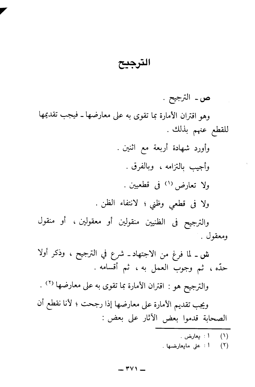 ص - الْأَوَّلُ: فِي السَّنَدِ وَالْمَتْنِ وَالْمَدْلُولِ وَفِي خَارِجٍ.