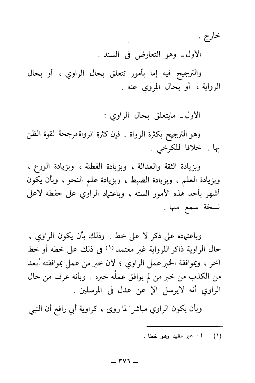 الْأَوَّلُ: مَا يَتَعَلَّقُ بِحَالِ الرَّاوِي، وَهُوَ التَّرْجِيحُ بِكَثْرَةِ الرُّوَاةِ، فَإِنَّ كَثْرَةَ الرُّوَاةِ مُرَجِّحَةٌ لِقُوَّةِ الظَّنِّ بِهَا، خِلَافًا لِلْكَرْخِيِّ.