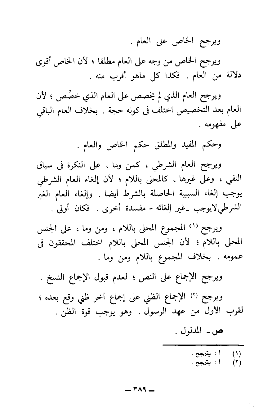 ش - لَمَّا فَرَغَ مِنَ التَّرْجِيحِ الْعَائِدِ إِلَى الْمَتْنِ، شَرَعَ فِي التَّرْجِيحِ الْعَائِدِ إِلَى الْمَدْلُولِ.