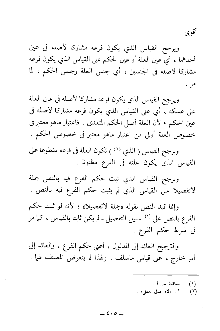 وَيُرَجَّحُ الْقِيَاسُ الَّذِي تَكُونُ الْعِلَّةُ فِي فَرْعِهِ مَقْطُوعًا عَلَى الْقِيَاسِ الَّذِي يَكُونُ عِلَّتُهُ فِي الْفَرْعِ مَظْنُونَةً.