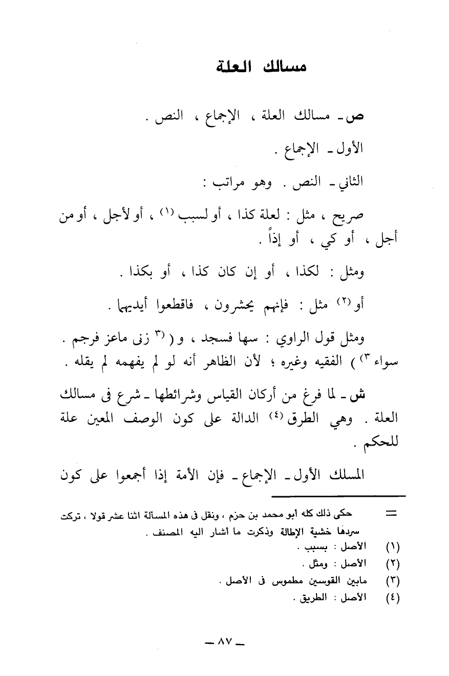 ص - مَسَالِكُ الْعِلَّةِ، الْإِجْمَاعُ، النَّصُّ.