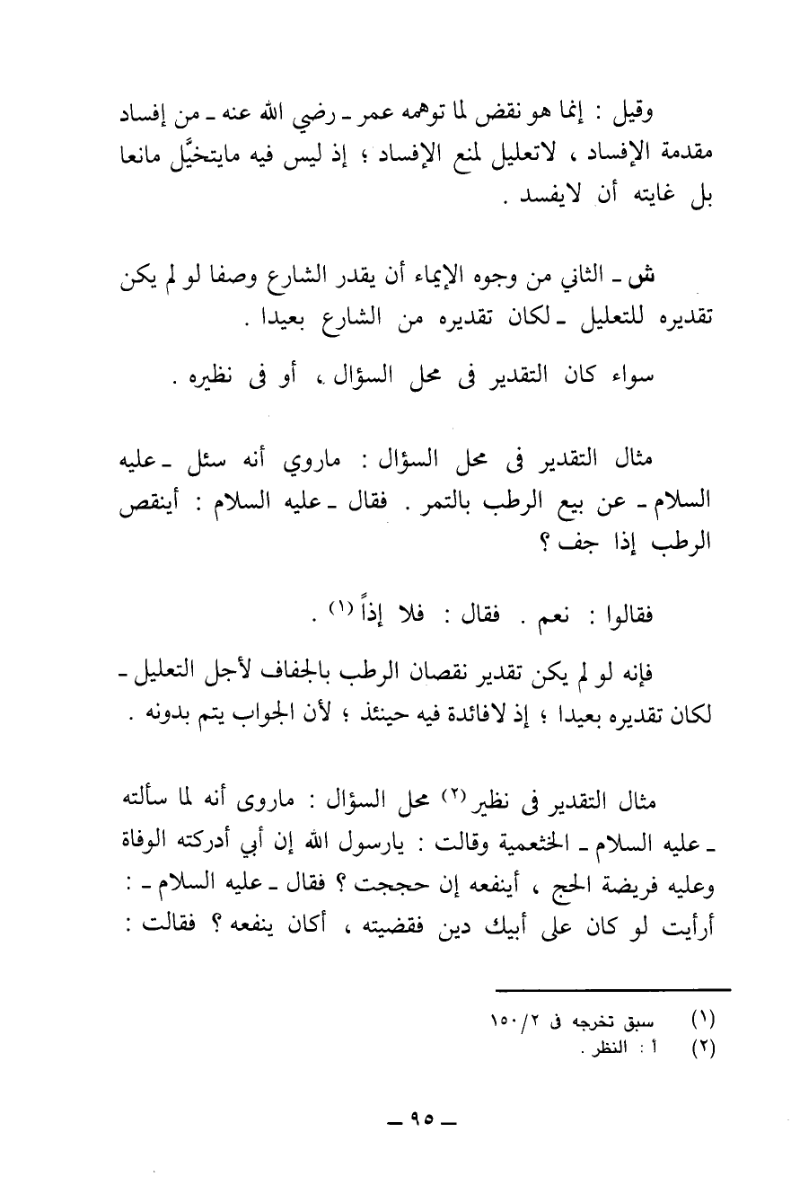 وَقِيلَ: إِنَّمَا هُوَ نَقْضٌ لِمَا تَوَهَّمَهُ عُمَرُ - رَضِيَ اللَّهُ عَنْهُ - مِنْ إِفْسَادِ مُقَدِّمَةِ الْإِفْسَادِ، لَا تَعْلِيلٌ لِمَنْعِ الْإِفْسَادِ، إِذْ لَيْسَ فِيهِ مَا يَتَخَيَّلُ مَانِعًا، بَلْ غَايَتُهُ أَنْ لَا يَفْسُدَ.