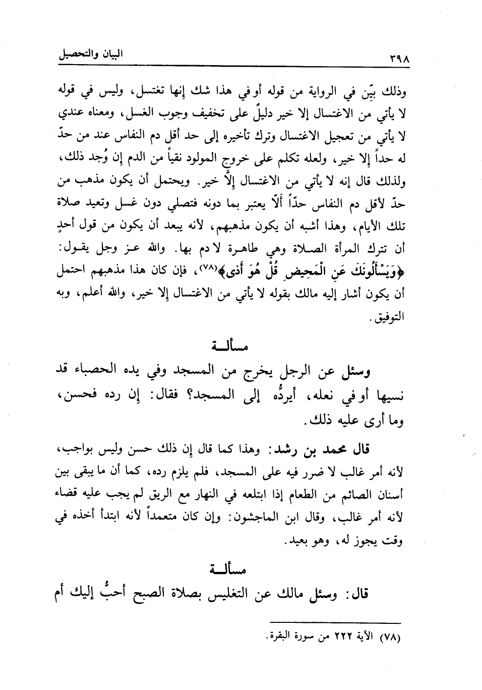 مسألة قال: وسئل مالك عن التغليس بصلاة الصبح أحب إليك أم