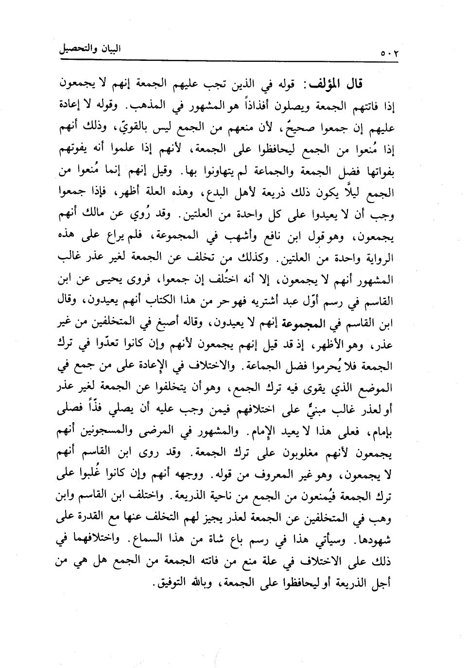 واختلف ابن القاسم وابن وهب في المتخلفين عن الجمعة لعذر يجيز لهم التخلف عنها مع القدرة على شهودها.