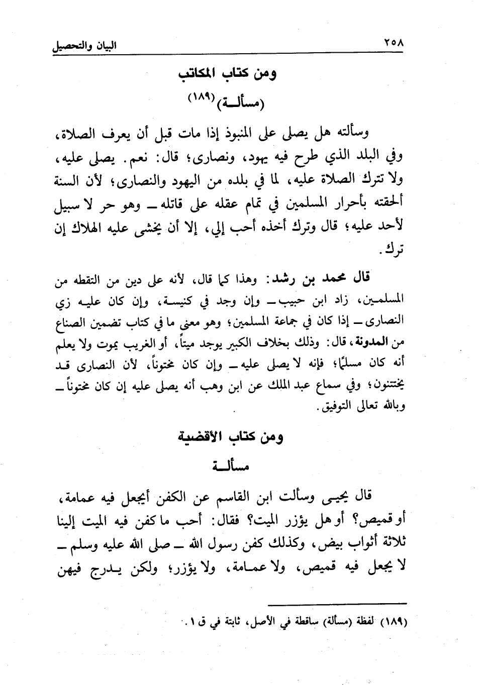 قال محمد بن رشد: وهذا كما قال؛ لأنه على دين من التقطه من المسلمين، زاد ابن حبيب - وإن وجد في كنيسة، وإن كان عليه زي النصارى - إذا كان في جماعة المسلمين، وهو معنى ما في كتاب تضمين الصناع من المدونة، قال: وذلك بخلاف الكبير يوجد ميتا، أو الغريب يموت ولا يُعلم أنه كان مسلما؟ فإنه لا يصلى عليه - وإن كان مختونا؛ لأن النصارى قد يختتنون. وفي سماع عبد الملك عن ابن وهب: أنه يصلى عليه إن كان مختونا - وبالله تعالى التوفيق.