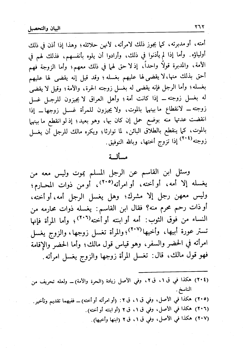 مسألة وسئل ابن القاسم: عن الرجل المسلم يموت وليس معه من يغسله إلا أمه، أو أخته، أو امرأته، أو من ذوات المحارم؛ وليس معهن رجل إلا مشرك؛ وهل يغسل الرجل أمه، أو أخته، أو ذات رحم محرم منه؟