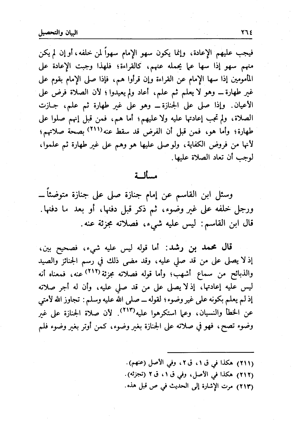 مسألة وسئل ابن القاسم: عن إمام جنازة صلى على جنازة متوضئا - ورجل خلفه على غير وضوء، ثم ذكر قبل دفنها، أو بعدما دفنها. قال ابن القاسم: ليس عليه شيء، فصلاته مجزئة عنه.