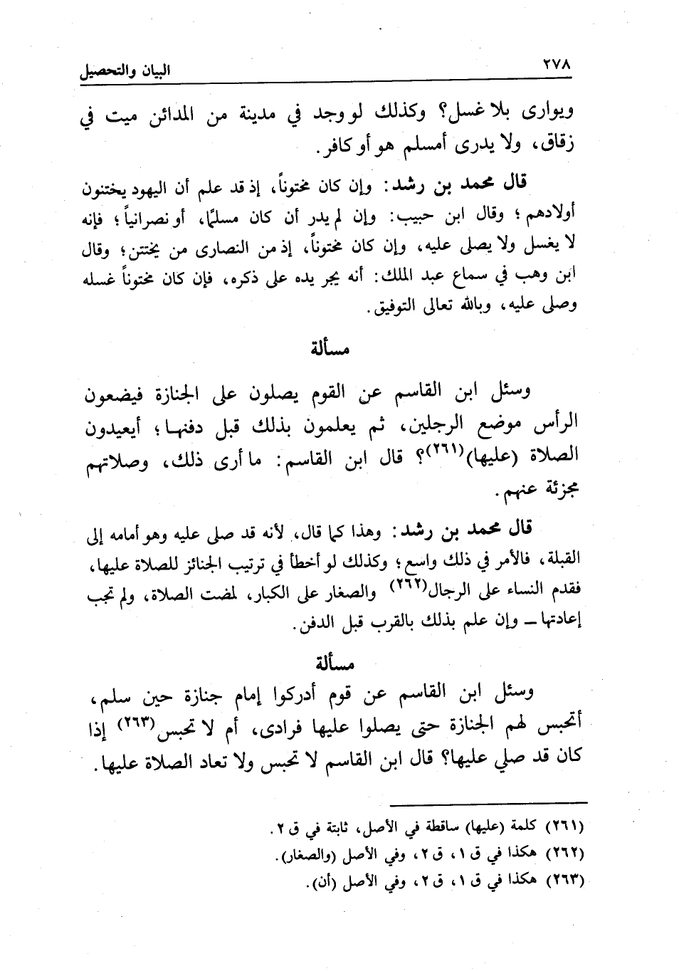 قال محمد بن رشد: وإن كان مختونا، إذ قد علم أن اليهود يختنون أولادهم، وقال ابن حبيب: وإن لم يدر إن كان مسلما أو نصرانيا. فإنه لا يغسل ولا يصلى عليه، وإن كان مختونا، إذ من النصارى من يختتن. وقال ابن وهب في سماع عبد الملك: أنه يجر يده على ذكره، فإن كان مختونا غسله وصلى عليه، وبالله تعالى التوفيق.