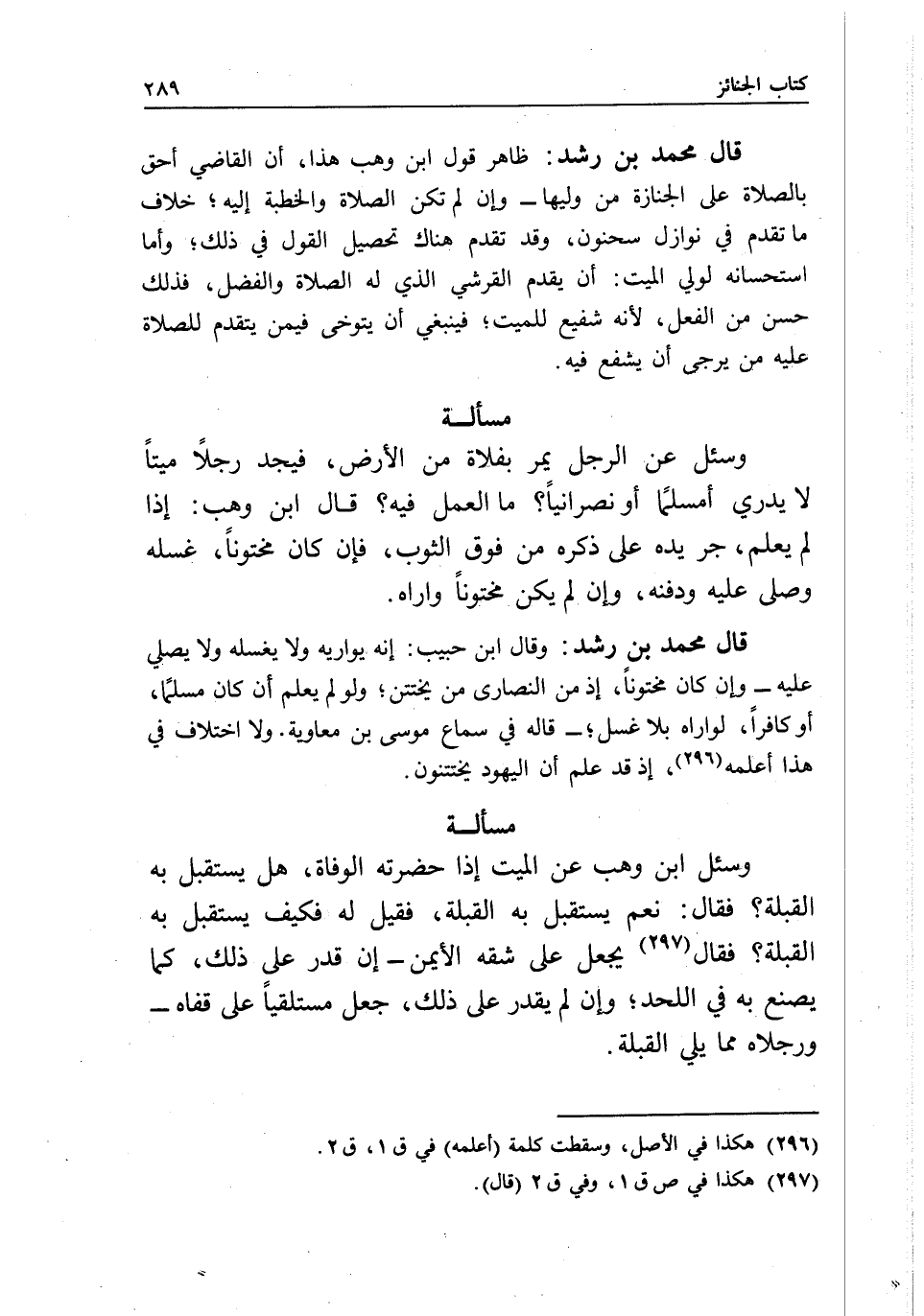 مسألة وسئل ابن وهب: عن الميت إذا حضرته الوفاة، هل يستقبل به القبلة؟