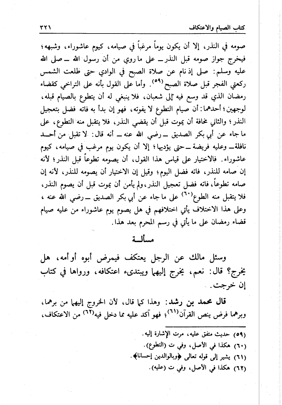 قال محمد بن رشد: وهذا كما قال؛ لأن الخروج إليهما من برهما، وبرهما فرض بنص القرآن، فهو آكد عليه مما دخل فيه من الاعتكاف،