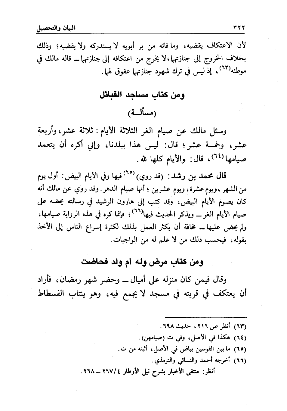 ومن كتاب مساجد القبائل مسألة وسئل مالك: عن صيام الغر الثلاثة الأيام: ثلاثة عشر، وأربعة عشر، وخمسة عشر، قال: ليس هذا ببلدنا، وإني أكره أن يتعمد صيامها، قال: والأيام كلها لله.