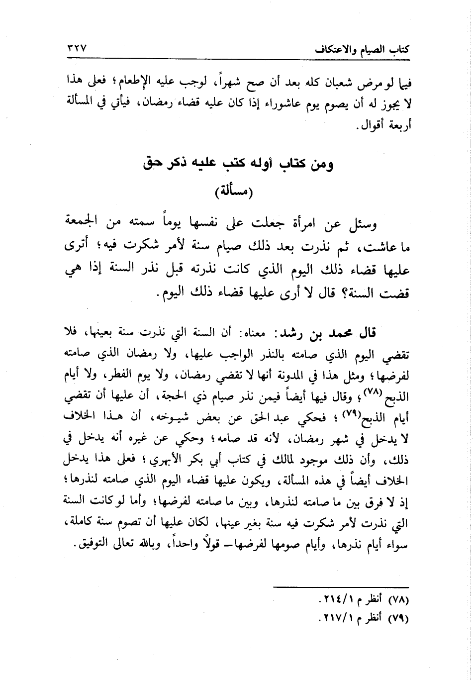 قال محمد بن رشد: معناه: أن السنة التي نذرت سنة بعينها، فلا تقضي اليوم الذي صامته بالنذر الواجب عليها، ولا رمضان الذي صامته لفرضها، ومثل هذا في المدونة أنها لا تقضي رمضان، ولا يوم الفطر، ولا أيام الذبح، وقال فيها أيضا فيمن نذر صيام ذي الحجة، أن عليها أن تقضي أيام الذبح، فحكي عبد الحق عن بعض شيوخه، أن هذا الخلاف لا يدخل في شهر رمضان؛ لأنه قد صامه؛ وحكي عن غيره أنه يدخل في ذلك، وأن ذلك موجود لمالك في كتاب أبي بكر الأبهري، فعلى هذا يدخل الخلاف أيضا في هذه المسألة، ويكون عليها قضاء اليوم الذي صامته لنذرها، إذ لا فرق بين ما صامته لنذرها، وبين ما صامته لفرضها، وأما لو كانت السنة التي نذرت لأمر شكرت فيه سنة بغير عينها، لكان عليها أن تصوم سنة كاملة، سواء أيام نذرها، وأيام صومها لفرضها - قولا واحدا، وبالله تعالى التوفيق.