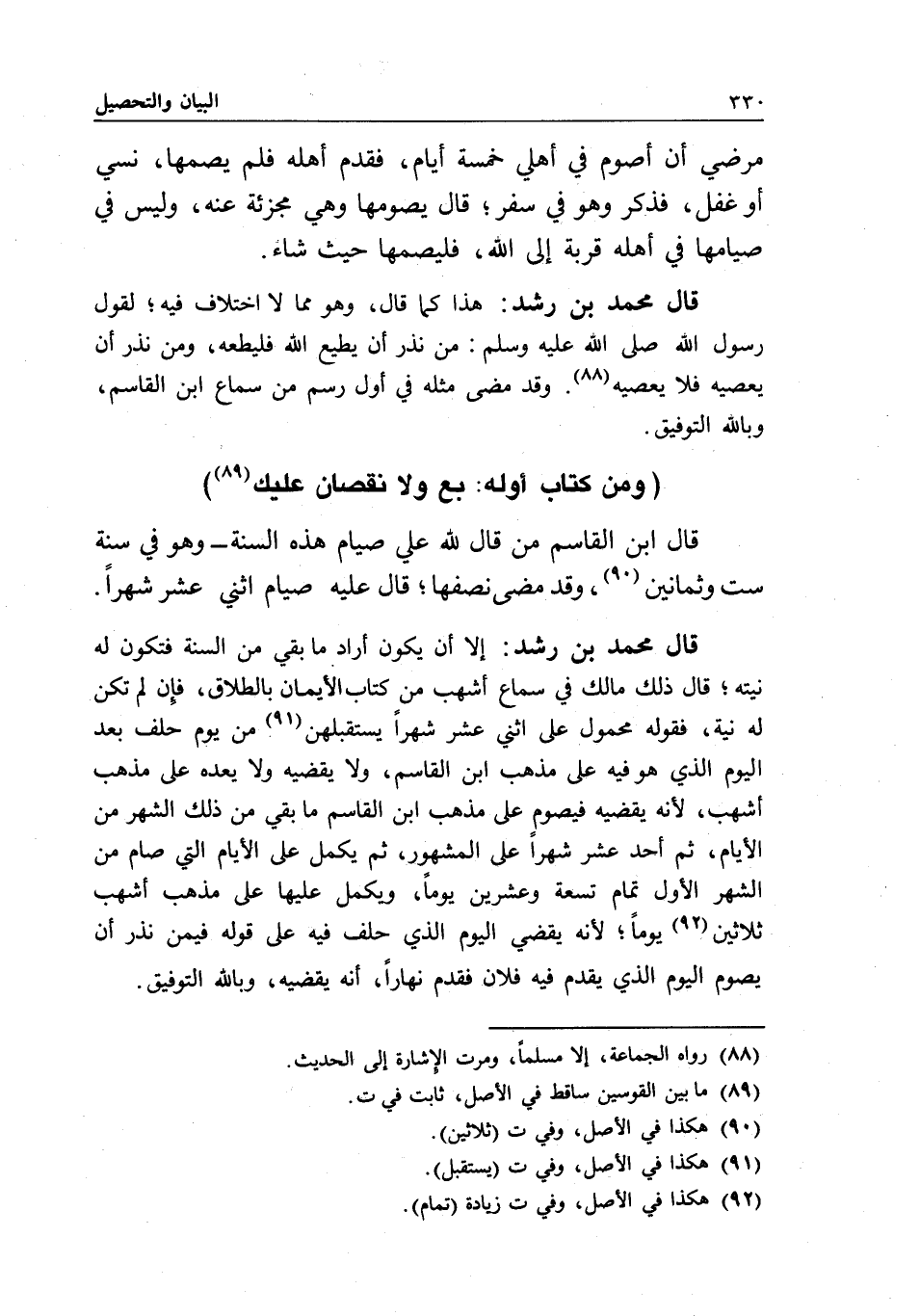 قال محمد بن رشد: هذا كما قال، وهو مما لا اختلاف فيه؛ لقول رسول الله - صَلَّى اللَّهُ عَلَيْهِ وَسَلَّمَ -: «من نذر أن يطيع الله فليطعه، ومن نذر أن يعصيه فلا يعصيه» . وقد مضى مثله في أول رسم من سماع ابن القاسم، وبالله التوفيق.