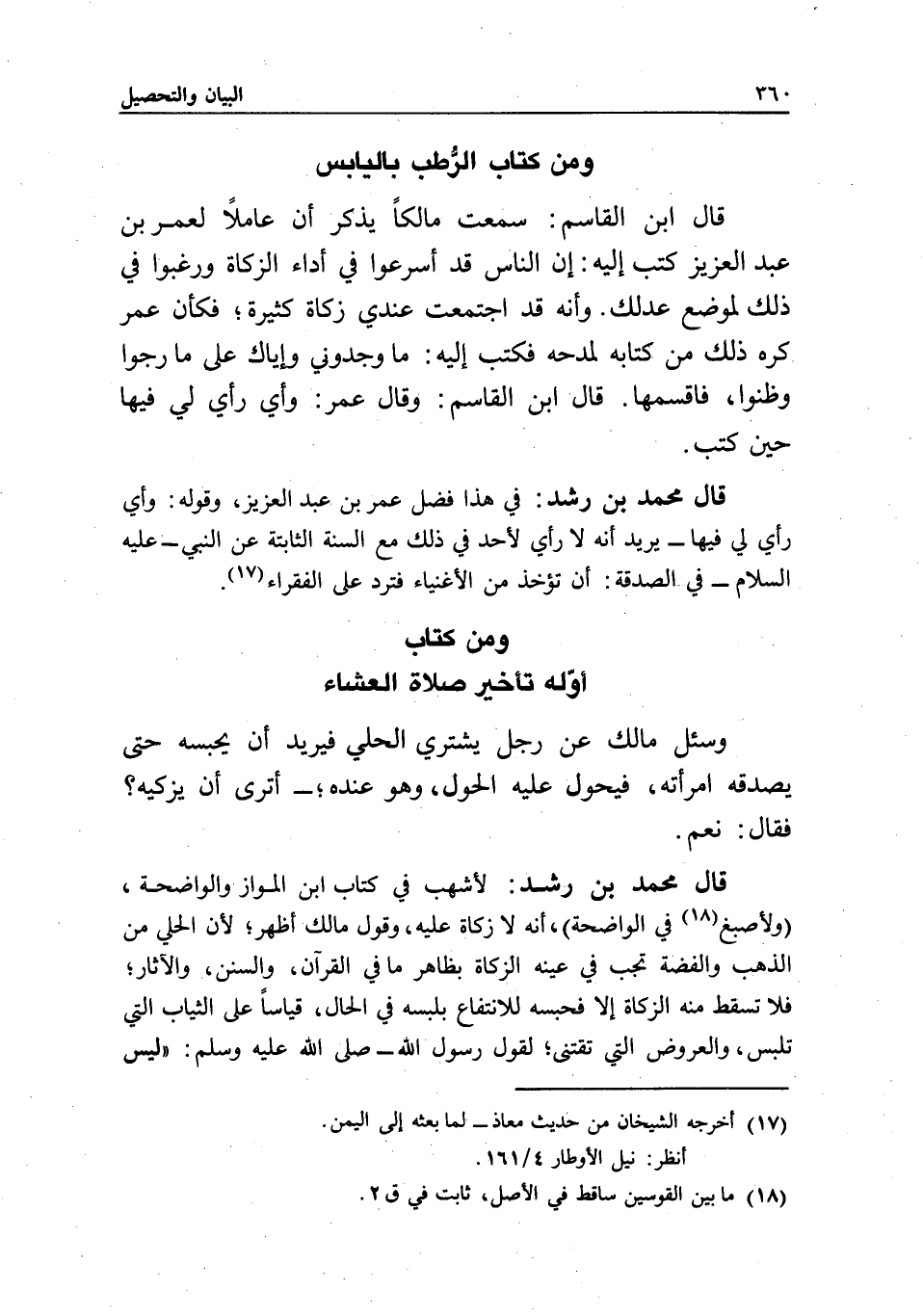 قال محمد بن رشد: في هذا فضل عمر بن عبد العزيز، وقوله: وأي رأي لي فيها - يريد: أنه لا رأي لأحد في ذلك مع السنة الثابتة عن النبي - عَلَيْهِ السَّلَامُ - في الصدقة: أن تؤخذ من الأغنياء فترد على الفقراء.