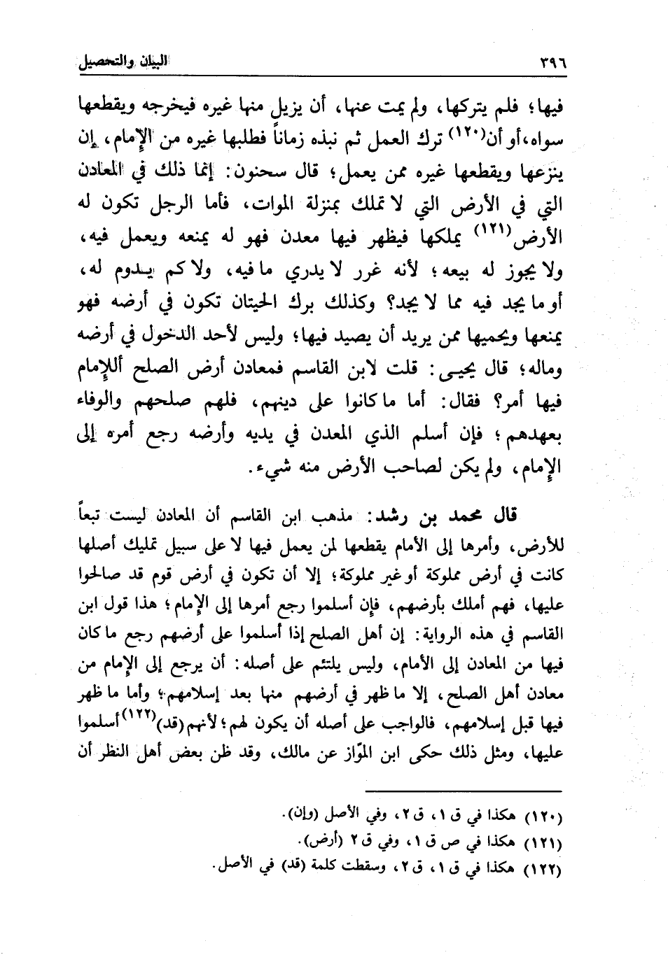 قال محمد بن رشد: مذهب ابن القاسم أن المعادن ليست تبعا للأرض، وأمرها إلى الأمام يقطعها لمن يعمل فيها لا على سبيل تمليك أصلها كانت في أرض مملوكة أو غير مملوكة، إلا أن تكون في أرض قوم قد صالحوا عليها، فهم أملك بأرضهم، فإن أسلموا رجع أمرها إلى الإمام؛ هذا قول ابن القاسم في هذه الرواية: إن أهل الصلح إذا أسلموا على أرضهم رجع ما كان فيها من المعادن إلى الأمام، وليس يلتئم على أصله: أن يرجع إلى الإمام من معادن أهل الصلح، إلا ما ظهر في أرضهم منها بعد إسلامهم؛ وأما ما ظهر فيها قبل إسلامهم، فالواجب على أصله أن يكون لهم؛ لأنهم (قد) أسلموا عليها، ومثل ذلك حكى ابن المواز عن مالك، وقد ظن بعض أهل النظر أن