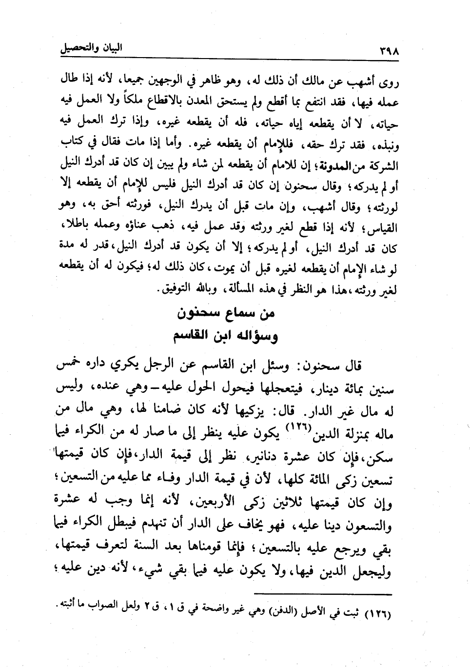 من سماع سحنون وسؤاله ابن القاسم