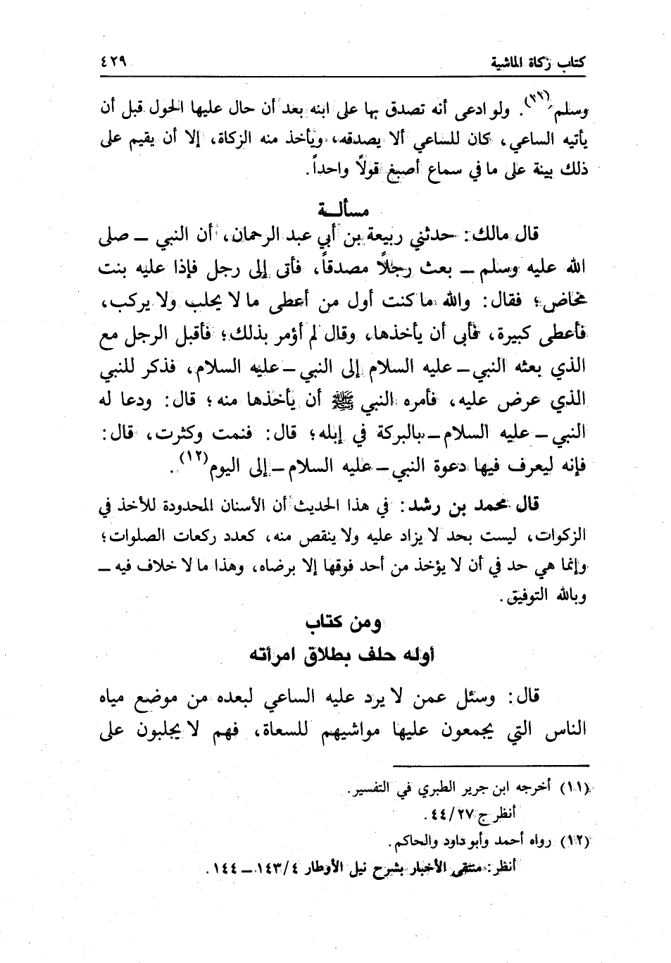 قال محمد بن رشد: في هذا الحديث أن الأسنان المحدودة للأخذ في الزكوات، ليست بحد لا يزاد عليه ولا ينقص منه، كعدد ركعات الصلوات؛ وإنما هي حد في أن لا يؤخذ من أحد فوقها إلا برضاه، وهذا ما لا خلاف فيه - وبالله التوفيق.