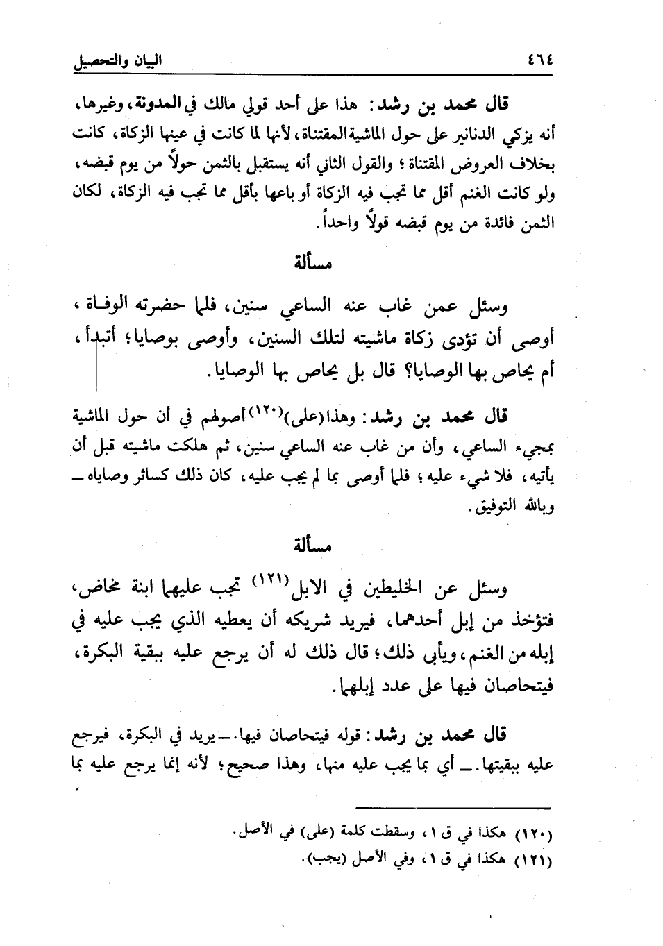 قال محمد بن رشد: وهذا (على) أصولهم في أن حول الماشية بمجيء الساعي، وأن من غاب عنه الساعي سنين، ثم هلكت ماشيته قبل أن يأتيه، فلا شيء عليه، فلما أوصى بما لم يجب عليه، كان ذلك كسائر وصاياه - وبالله التوفيق.