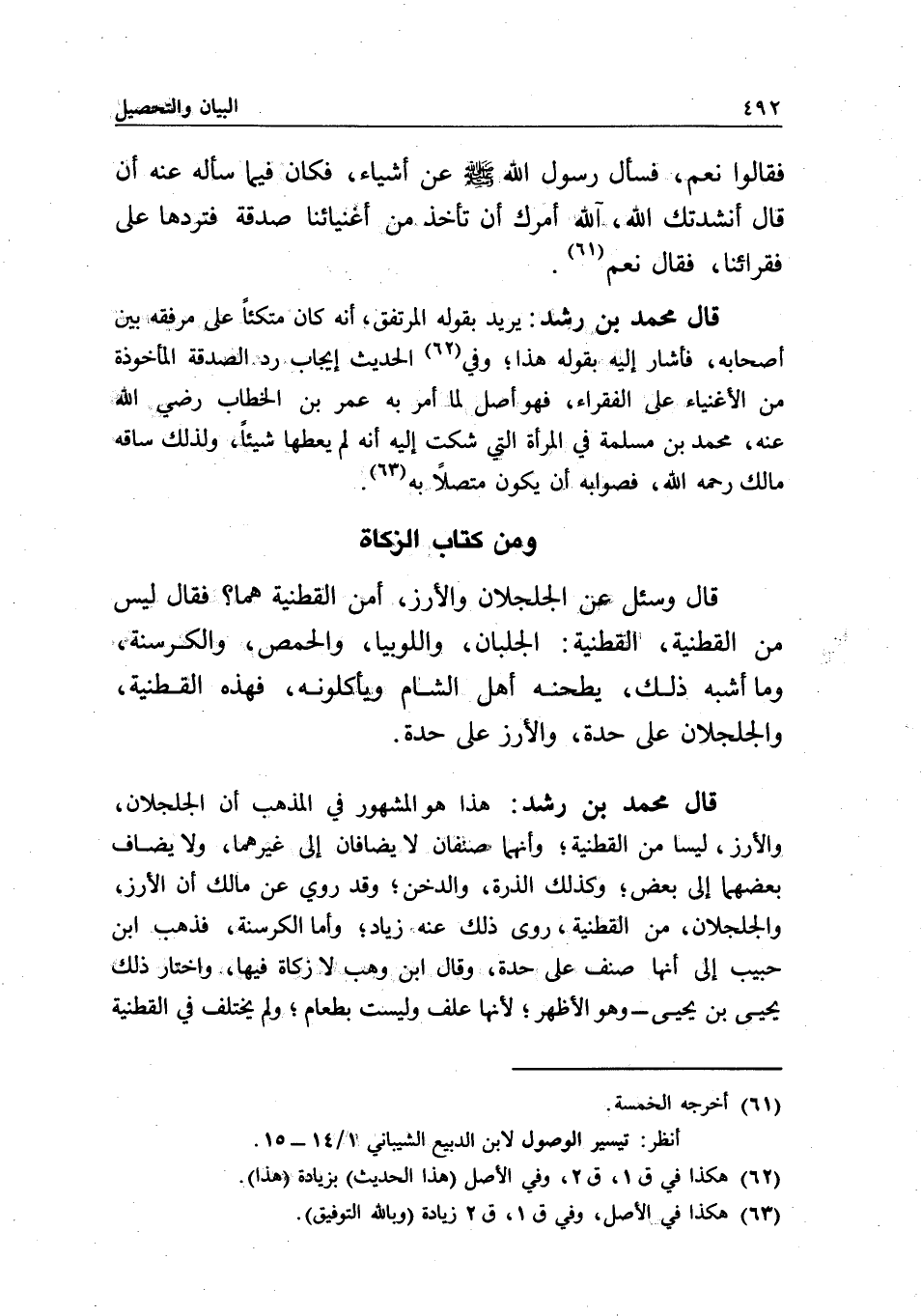 قال محمد بن رشد: يريد بقوله: المرتفق، أنه كان متكئا على مرفقه بين أصحابه، فأشار إليه بقوله هذا، وفي الحديث إيجاب رد الصدقة المأخوذة من الأغنياء على الفقراء، فهو أصل لما أمر به عمر بن الخطاب - رَضِيَ اللَّهُ عَنْهُ -، محمد بن مسلمة في المرأة التي شكت إليه أنه لم يعطها شيئا، ولذلك ساقه مالك - رَحِمَهُ اللَّهُ -، فصوابه أن يكون متصلا به.