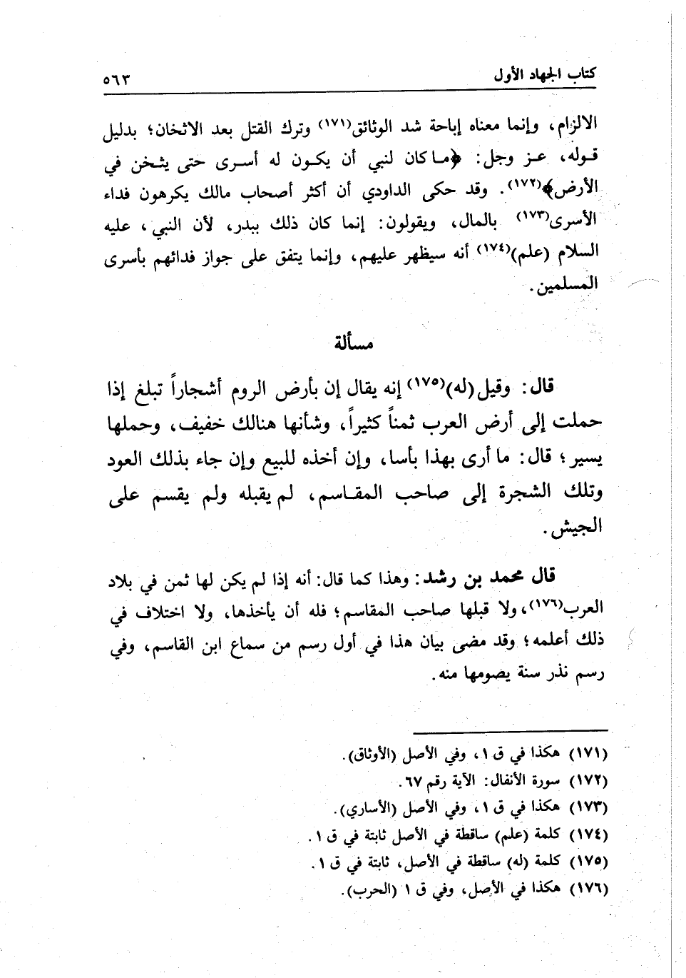 مسألة قال: وقيل (له) إنه يقال إن بأرض الروم أشجارا تبلغ إذا حملت إلى أرض العرب ثمنا كثيرا، وشأنها هنالك خفيف، وحملها يسير، قال: ما أرى بهذا بأسا، وإن أخذه للبيع وإن جاء بذلك العود وتلك الشجرة إلى صاحب المقاسم، لم يقبله ولم يقسم على الجيش.