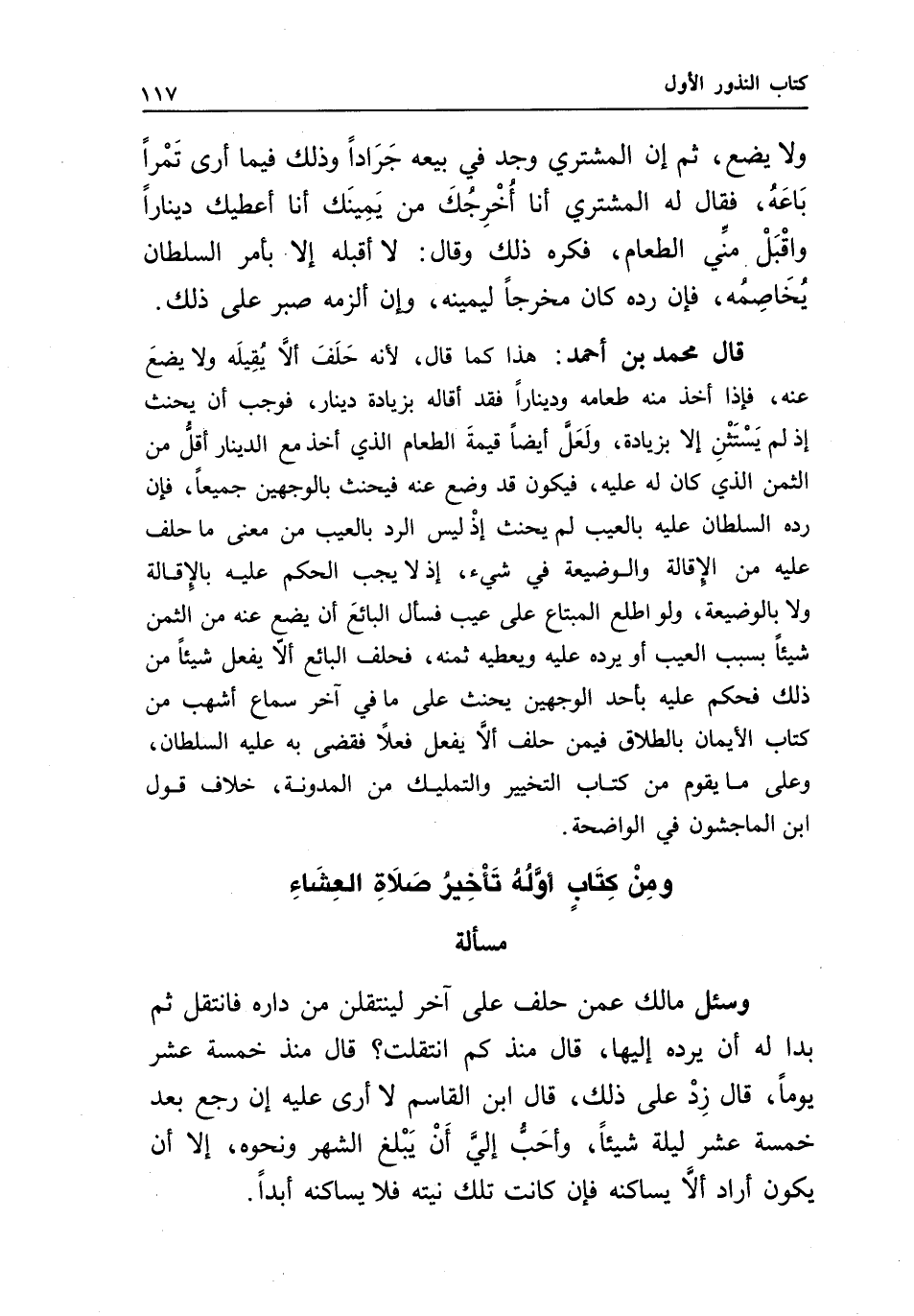 ومن كتاب أوله تأخير صلاة العشاء مسألة وسئل مالك عمن حلف على آخر: لينتقلن من داره، فانتقل ثم بدا له أن يرده إليها، قال: منذ كم انتقلت؟ قال: منذ خمسة عشر يوما، قال: زد على ذلك، قال ابن القاسم: لا أرى عليه إن رجع بعد خمسة عشر ليلة شيئا، وأحب إلي أن يبلغ الشهر ونحوه، إلا أن يكون أراد ألا يساكنه، فإن كانت تلك نيته، فلا يساكنه أبدا.