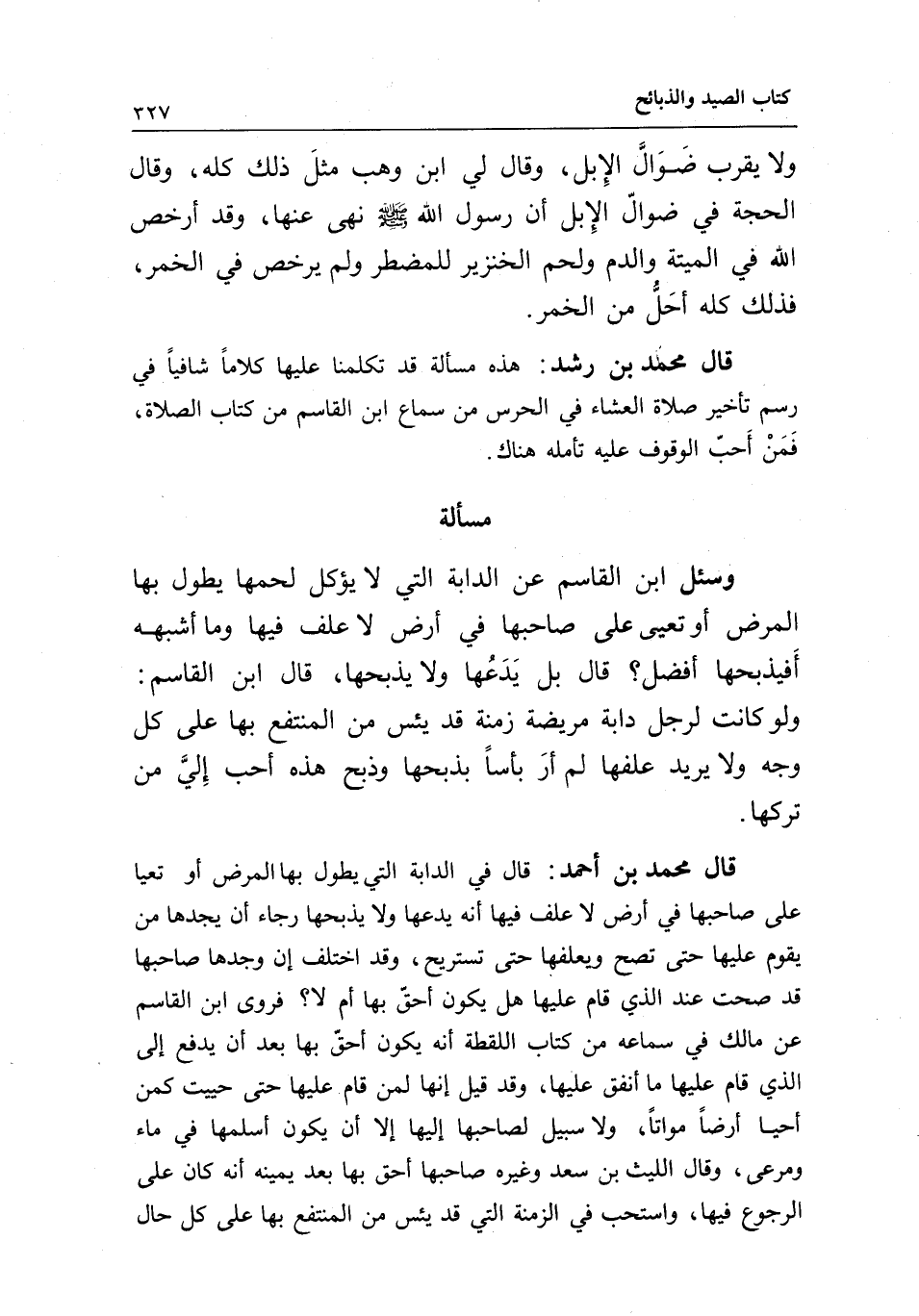 قال محمد بن رشد: هذه مسألة قد تكلمنا عليها كلاما شافيا في رسم تأخير صلاة العشاء في الحرس من سماع ابن القاسم من كتاب الصلاة، فمن أحب الوقوف عليه تأمله هناك.