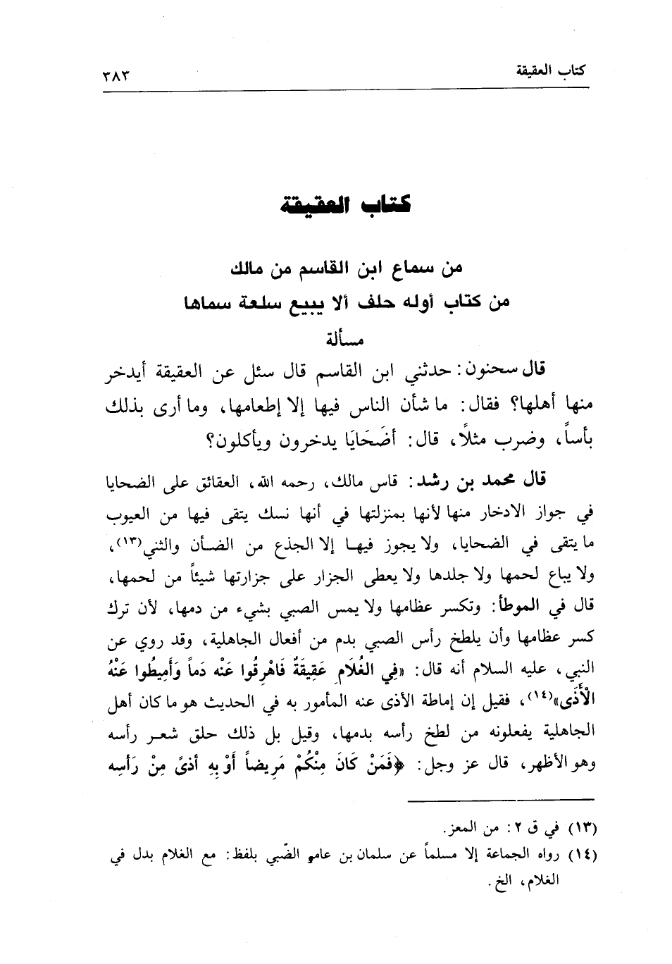 كتاب العقيقة من سماع ابن القاسم من مالك