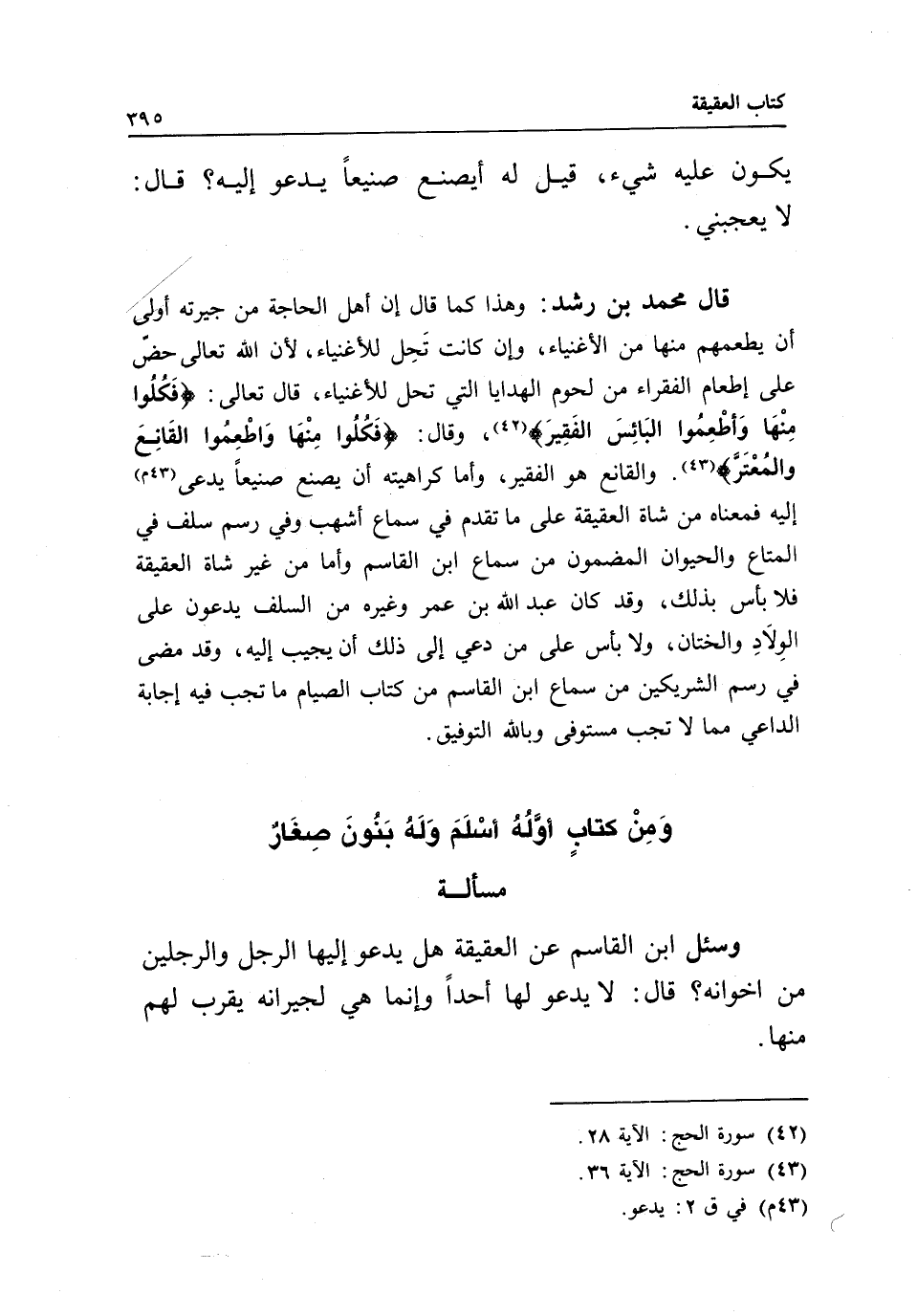 [مسألة: العقيقة هل يدعو إليها الرجل والرجلين من إخوانه]