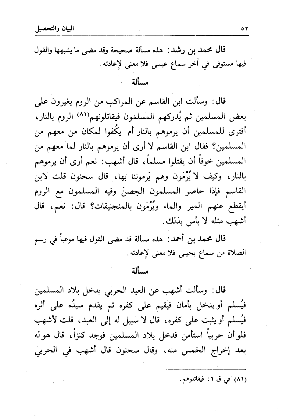 قال محمد بن رشد: هذه مسألة صحيحة، وقد مضى ما يشبهها، والقول فيها مستوفى في آخر سماع عيسى، فلا معنى لإعادته.