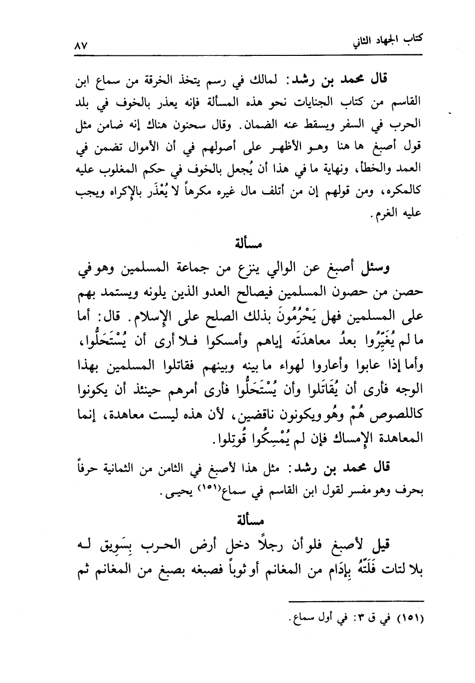 قال محمد بن رشد: مثل هذا لأصبغ في الثامن من الثمانية حرفا بحرف، وهو مفسر لقول ابن القاسم في سماع يحيى.
