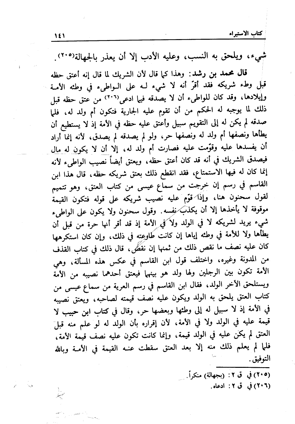 قال محمد بن رشد: وهذا كما قال؛ لأن الشريك لما قال: إنه أعتق حظه قبل وطء شريكه، فقد أقر أنه لا شيء له على الواطئ في وطئه الأمة وإيلادها، وقد كان للواطئ أن لا يصدقه فيما ادعى من عتق حظه قبل ذلك لما يوجبه له الحكم من أن تقوم عليه الجارية، فتكون أم ولد له، فلما صدقه لم يكن له إلى التقويم سبيل، وأعتق عليه حظه في الأمة إذ لا يستطيع أن يطأها، ونصفها أم ولد له، ونصفها حر، ولو لم يصدقه لم يصدق؛ لأنه إنما أراد أن يفسدها عليه وقومت عليه فصارت أم ولد له، إلا أن لا يكون له مال فيصدق الشريك في أنه قد كان أعتق حظه، ويعتق أيضا نصيب الواطئ؛ لأنه إنما كان له فيها الاستمتاع، فقد انقطع ذلك بعتق شريكه حظه، قال هذا ابن القاسم في رسم إن خرجت من سماع عيسى من كتاب العتق، وهو تتميم لقول سحنون هنا، وإذا قوم عليه نصيب شريكه على قوله، فتكون القيمة موقوفة لا يأخذها إلا أن يكذب نفسه.