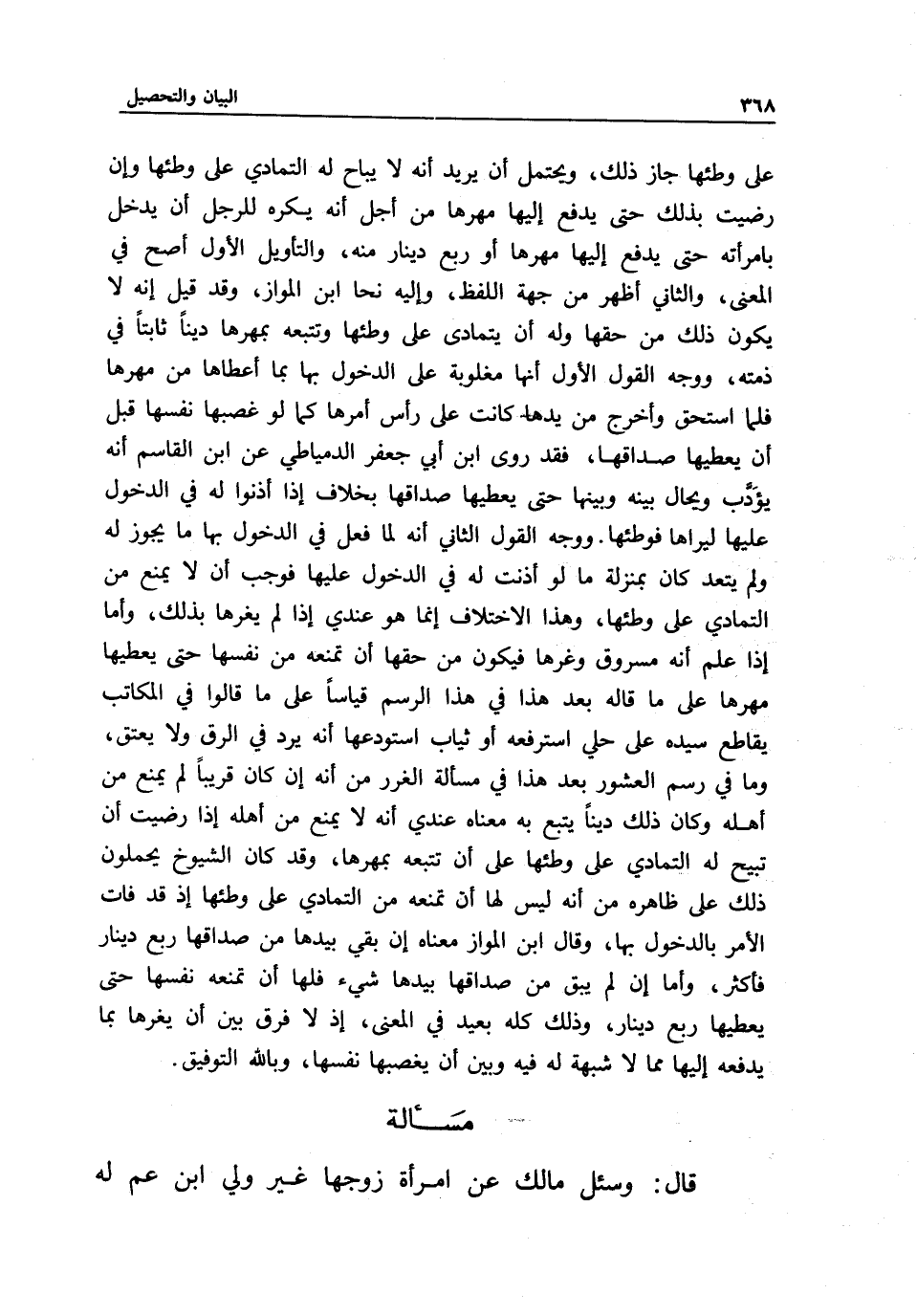 مسألة قال: وسئل مالك عن امرأة زوجها غير ولي ابن عم له،