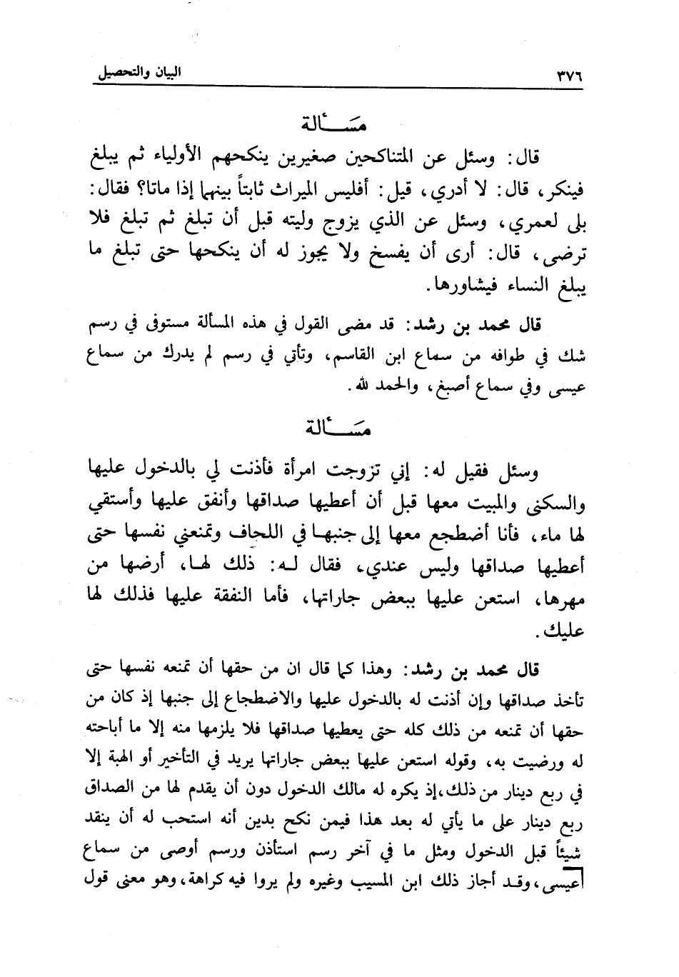 قال محمد بن رشد: قد مضى القول في هذه المسألة مستوفى في رسم شك في طوافه من سماع ابن القاسم، وتأتي في رسم لم يدرك من سماع عيسى وفي سماع أصبغ، والحمد لله.