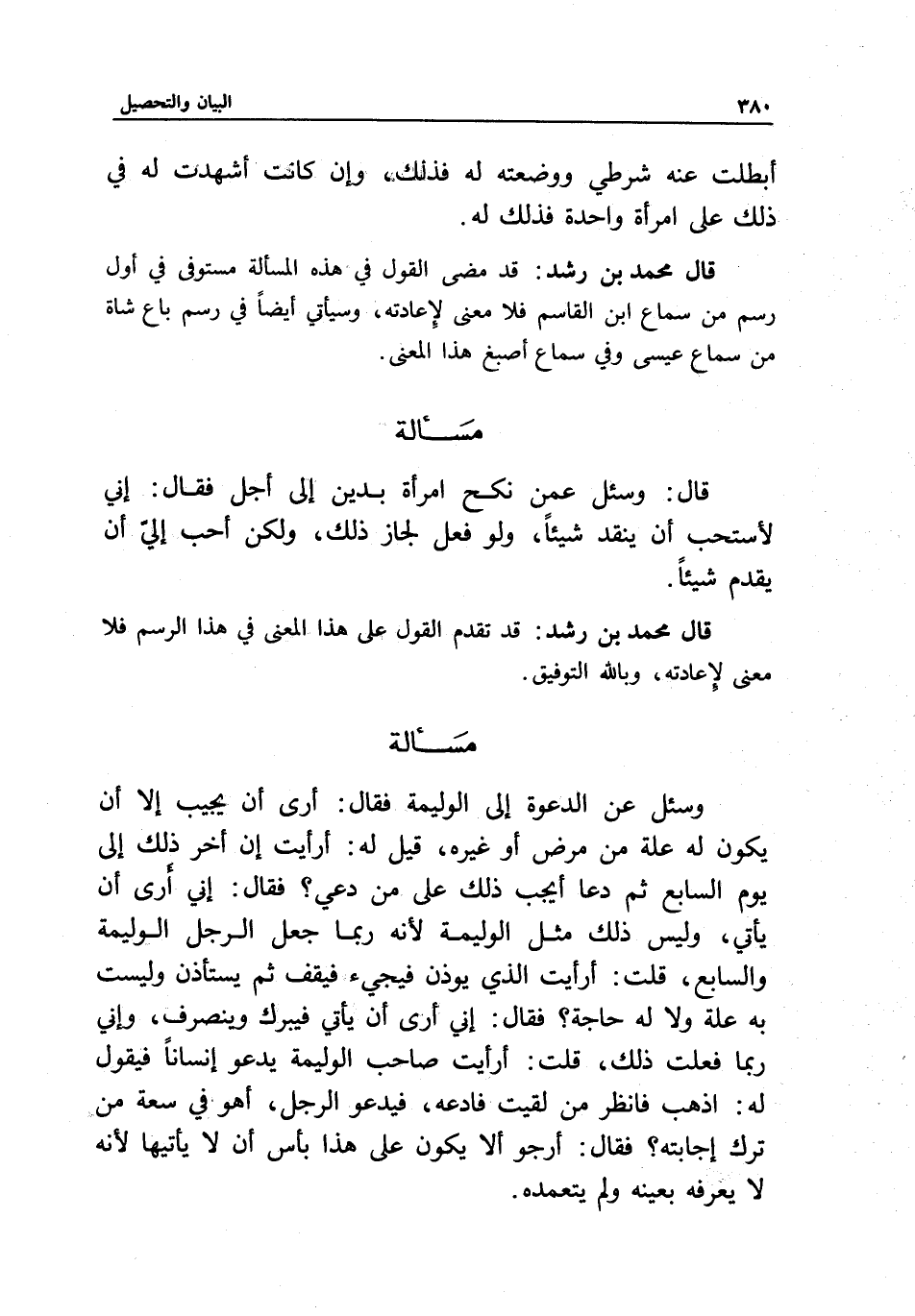 قال محمد بن رشد: قد تقدم القول على هذا المعنى في هذا الرسم فلا معنى لإعادته، وبالله التوفيق.