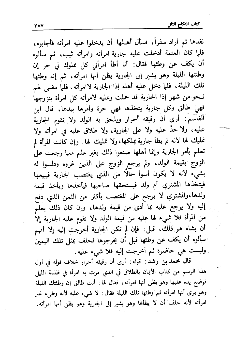 قال محمد بن رشد: قوله: أرى أن رقيقه أحرار خلاف قوله في أول هذا الرسم من كتاب الأيمان بالطلاق في الذي مرت به امرأة في ظلمة الليل فوضع يده عليها وهو يظن أنها امرأته، فقال لها: أنت طالق إن وطئتك الليلة وهو يرى أنها امرأته ثم وطئها تلك الليلة فقال: لا شيء عليه لأنه وطأ غير امرأته لأنه حلف أن لا يطأها وهو يشير إلى الجارية وهو يظن أنها امرأته،