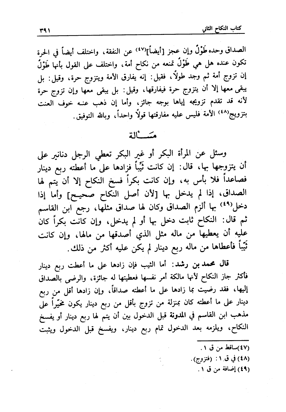 مسألة وسئل عن المرأة البكر أو غير البكر تعطي الرجل دنانير على أن يتزوجها بها، قال: إن كانت ثيبا فزادها على ما أعطته ربع دينار فصاعدا فلا بأس به، وإن كانت بكرا فسخ النكاح إلا أن يتم لها الصداق، إذا لم يدخل بها [لأن أصل النكاح صحيح] وأما إذا دخل بها ألزم الصداق وكان لها صداق مثلها، رجع ابن القاسم ثم قال: النكاح ثابت دخل بها أو لم يدخل، وإن كانت بكرا كان عليه أن يعطيها من ماله مثل الذي أصدقها من مالها، وإن كانت ثيبا فأعطاها من ماله ربع دينار لم يكن عليه أكثر من ذلك.