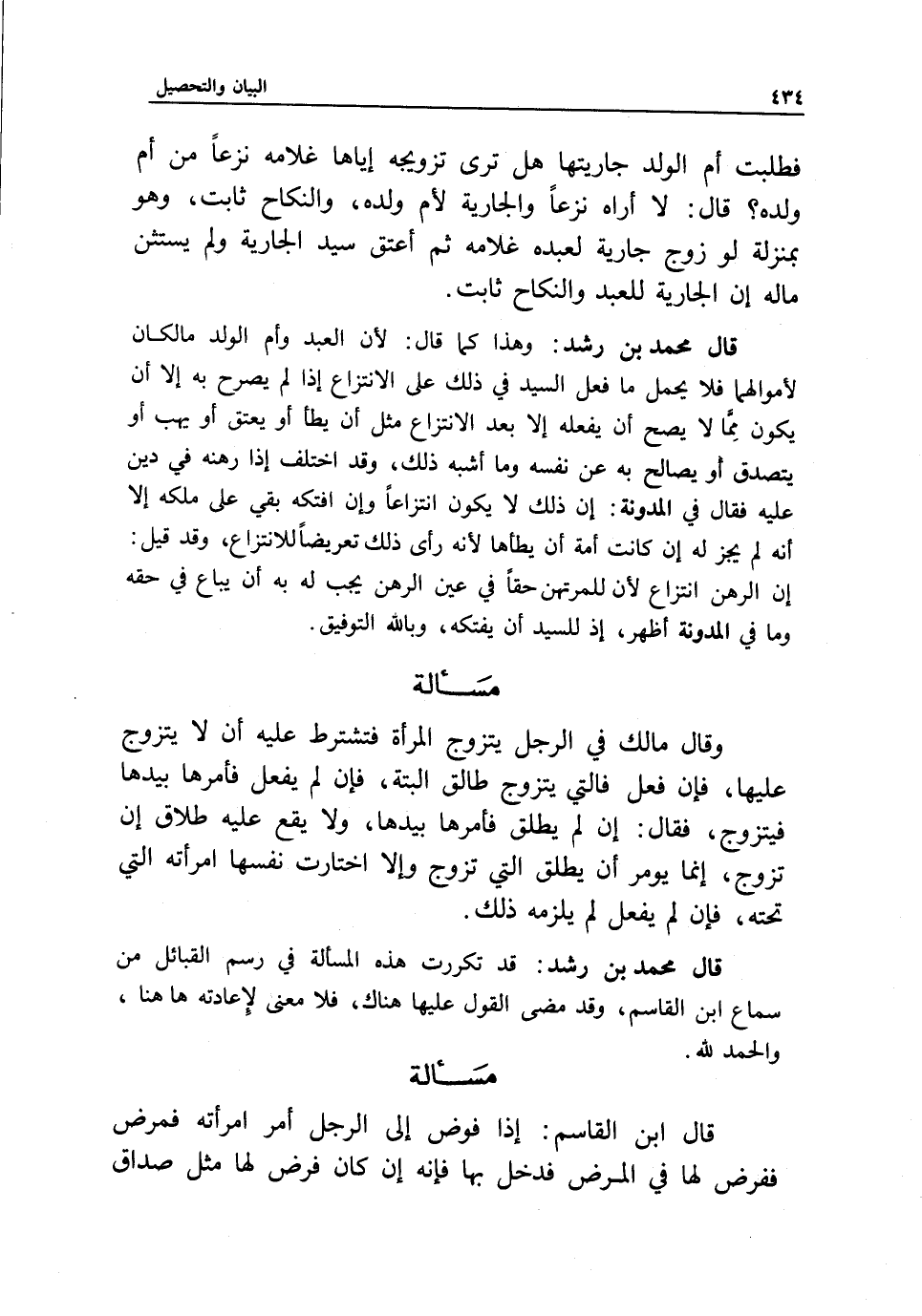 قال محمد بن رشد: قد تكررت هذه المسألة في رسم القبائل من سماع ابن القاسم، وقد مضى القول عليها هناك، فلا معنى لإعادته هاهنا، والحمد لله.