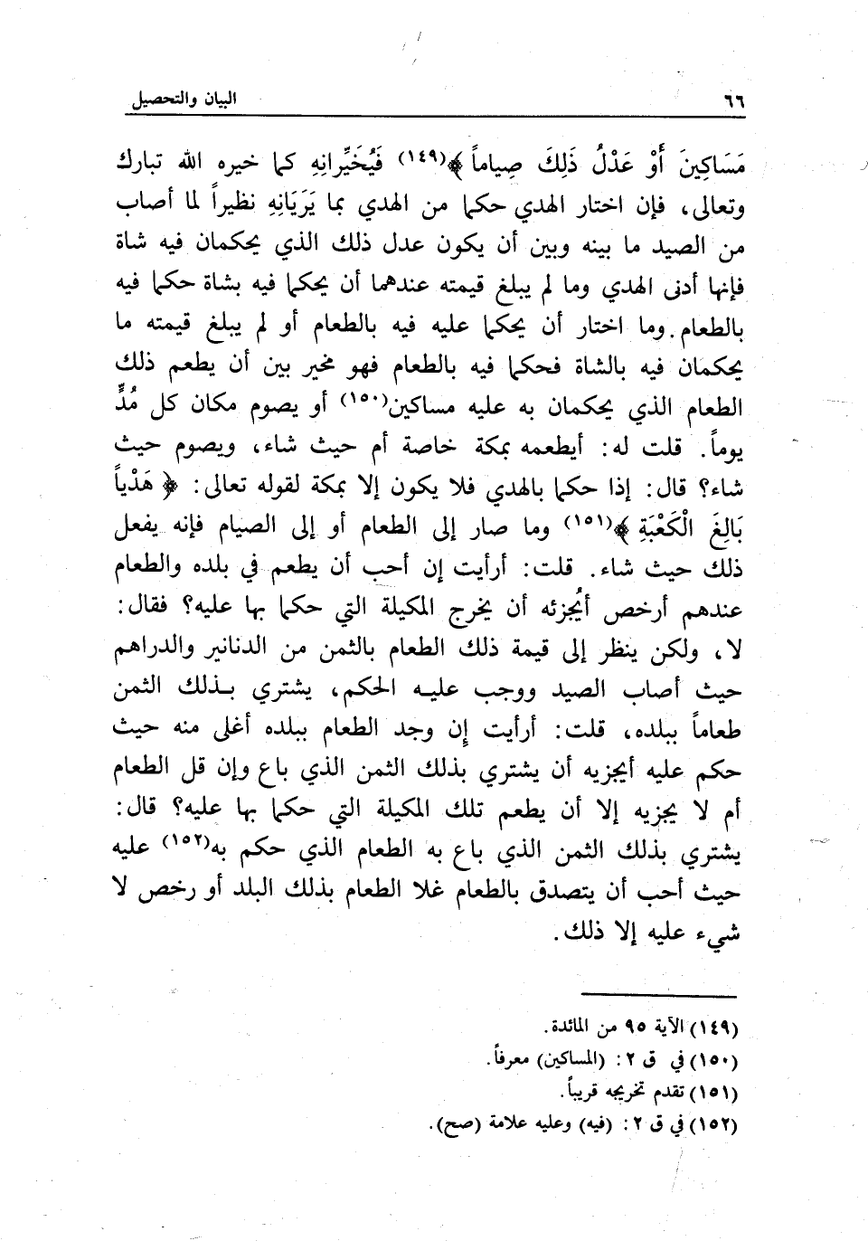 فيخيرانه كما خيره الله تبارك وتعالى، فإن اختار الهدي حكما من الهدي بما يريانه نظيرا لما أصاب من الصيد ما بينه وبين أن يكون عدل ذلك الذي يحكمان فيه شاة، فإنها أدنى الهدي وما لم يبلغ قيمته عندهما أن يحكما فيه بشاة حكما فيه بالطعام. وما اختار أن يحكما عليه فيه بالطعام أو لم يبلغ قيمته ما يحكمان فيه بالشاة، فحكما فيه بالطعام فهو مخير بين أن يطعم ذلك الطعام الذي يحكمان به عليه مساكين أو يصوم مكان كل مد يوما. قلت له: أيطعمه بمكة خاصة أم حيث شاء، ويصوم حيث شاء؟ قال: إذا حكما بالهدي فلا يكون إلا بمكة لِقَوْلِهِ تَعَالَى: {هَدْيًا بَالِغَ الْكَعْبَةِ} [المائدة: 95] ، وما صار إلى الطعام أو إلى الصيام فإنه يفعل ذلك حيث شاء. قلت: أرأيت إن أحب أن يطعم في بلده والطعام عندهم أرخص، أيجزئه أن يخرج المكيلة التي حكما بها عليه؟ فقال: لا، ولكن ينظر إلى قيمة ذلك الطعام بالثمن من الدنانير والدراهم حيث أصاب الصيد ووجب عليه الحكم، يشتري بذلك الثمن طعاما ببلده، قلت: أرأيت إن وجد الطعام ببلده أغلى منه حيث حكم عليه أيجزيه أن يشتري بذلك الثمن الذي باع وإن قل الطعام أم لا يجزيه إلا أن يطعم تلك المكيلة التي حكما بها عليه؟ قال: يشتري بذلك الثمن الذي باع به الطعام الذي حكم به عليه حيث أحب أن يتصدق بالطعام، غلا الطعام بذلك البلد أو رخص، لا شيء عليه إلا ذلك.