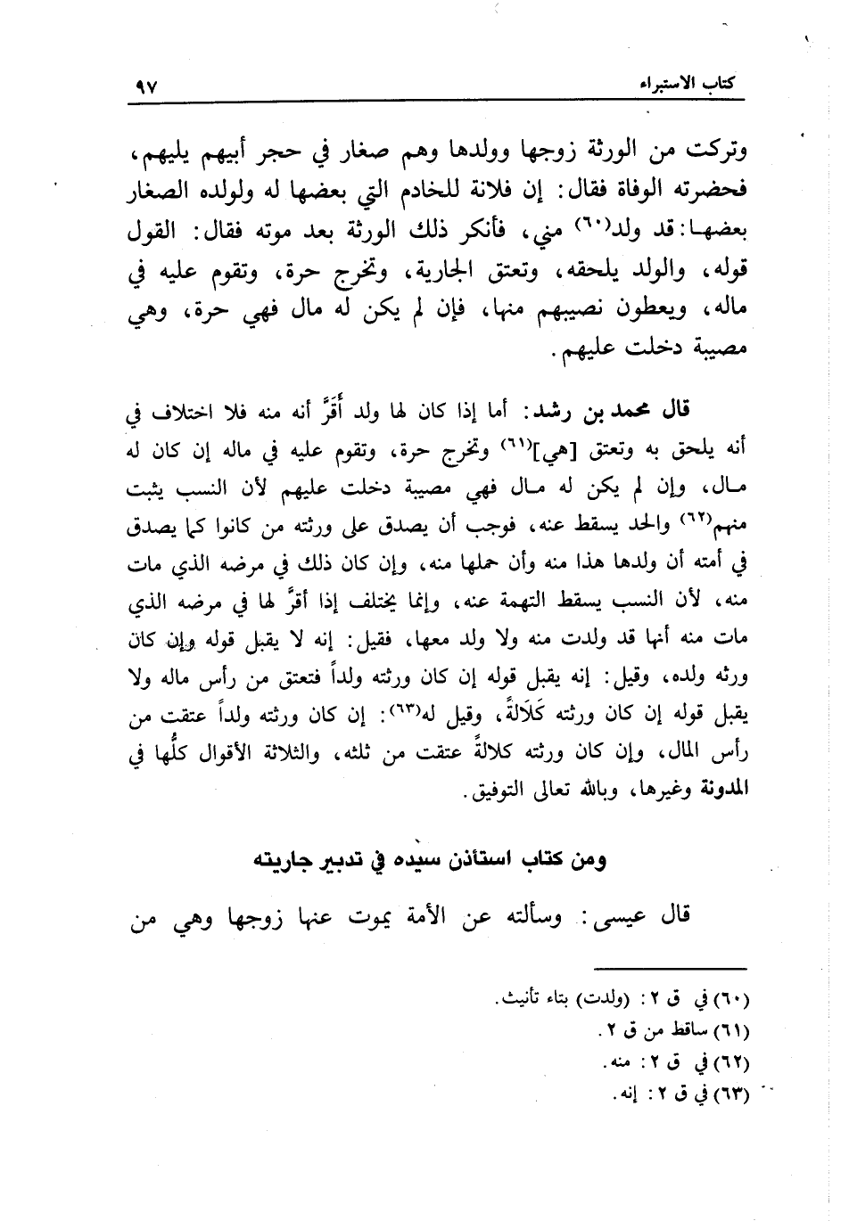 ومن كتاب استأذن سيده في تدبير جاريته قال عيسى: وسألته: عن الأمة يموت عنها زوجها وهي من
