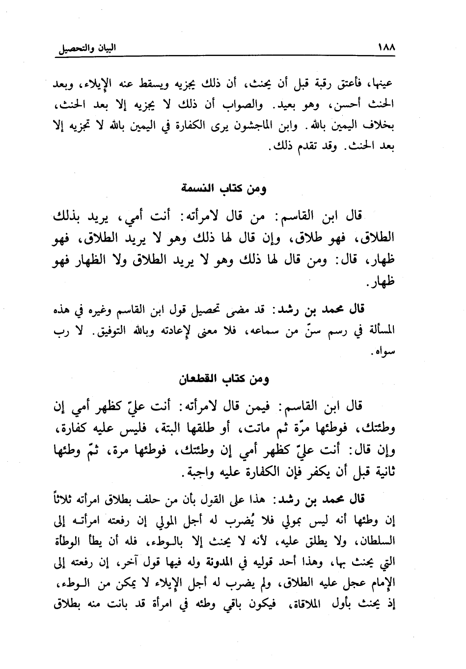 قال محمد بن رشد: قد مضى تحصيل قول ابن القاسم وغيره في هذه المسألة في رسم سن من سماعه، فلا معنى لإعادته، وبالله التوفيق، لا رب سواه.