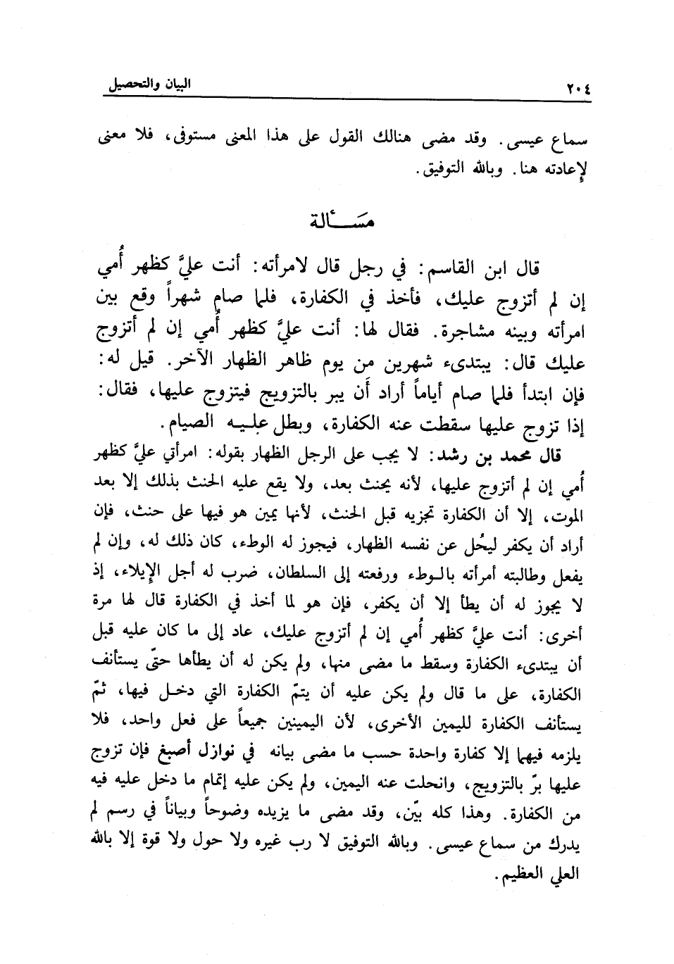 سماع عيسى. وقد مضى هنالك القول على هذا المعنى مستوفى، فلا معنى لإعادته هنا، وبالله التوفيق.