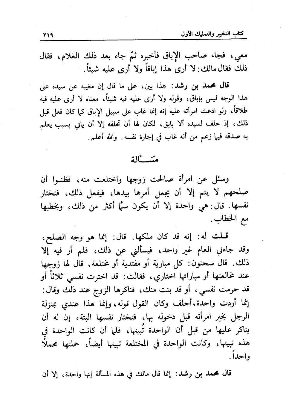 قال محمد بن رشد: إنما قال مالك في هذه المسألة: إنها واحدة، إلا أن