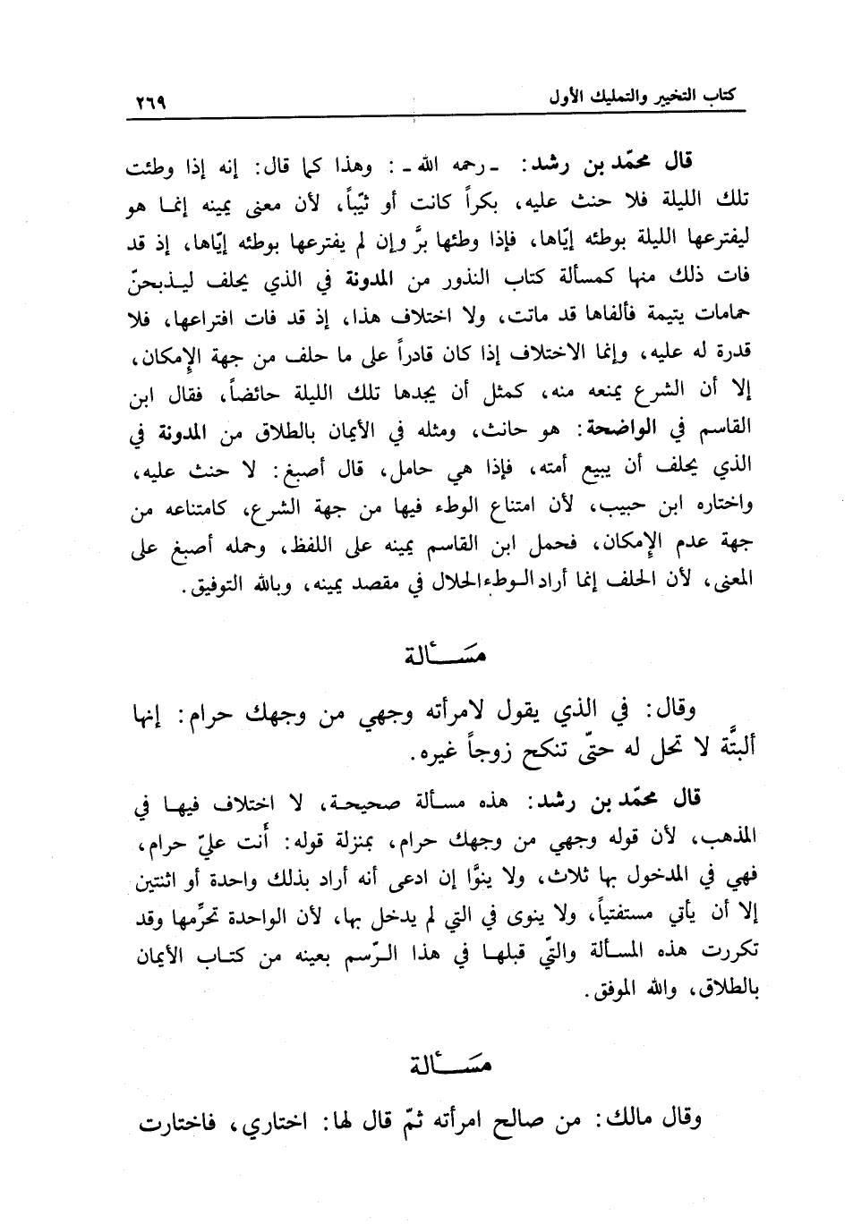 قال محمد بن رشد: هذه مسألة صحيحة، لا اختلاف فيها في المذهب؛ لأن قوله وجهي من وجهك حرام، بمنزلة قوله: أنت علي حرام، فهي في المدخول بها ثلاث، ولا ينوى إن ادعى أنه أراد بذلك واحدة أو اثنتين إلا أن يأتي مستفتيا، ولا ينوى في التي لم يدخل بها؛ لأن الواحدة تحرمها وقد تكررت هذه المسألة والتي قبلها في هذا الرسم بعينه من كتاب الأيمان بالطلاق، والله الموفق.
