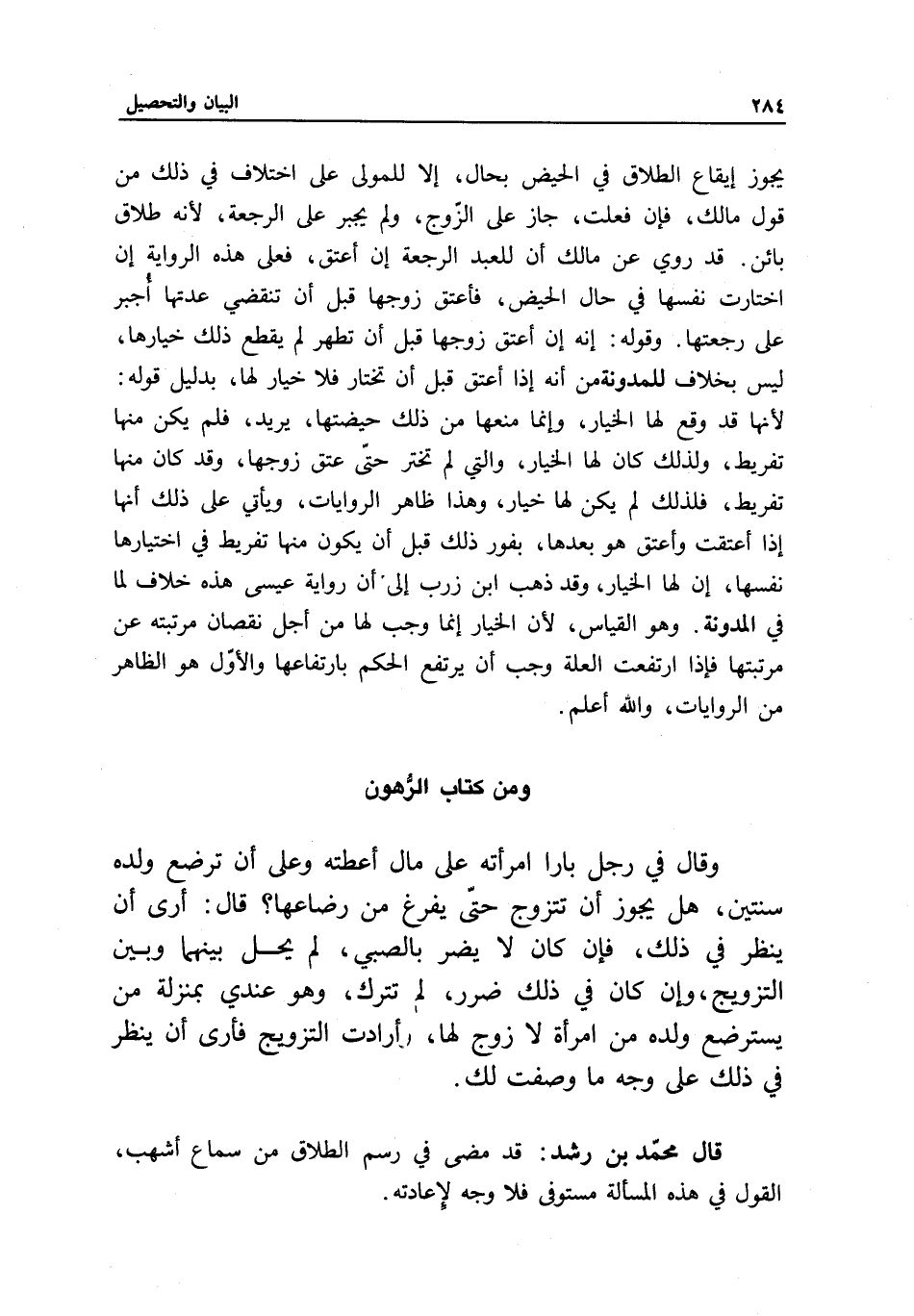 قال محمد بن رشد: قد مضى في رسم الطلاق من سماع أشهب، القول في هذه المسألة مستوفى فلا وجه لإعادته.