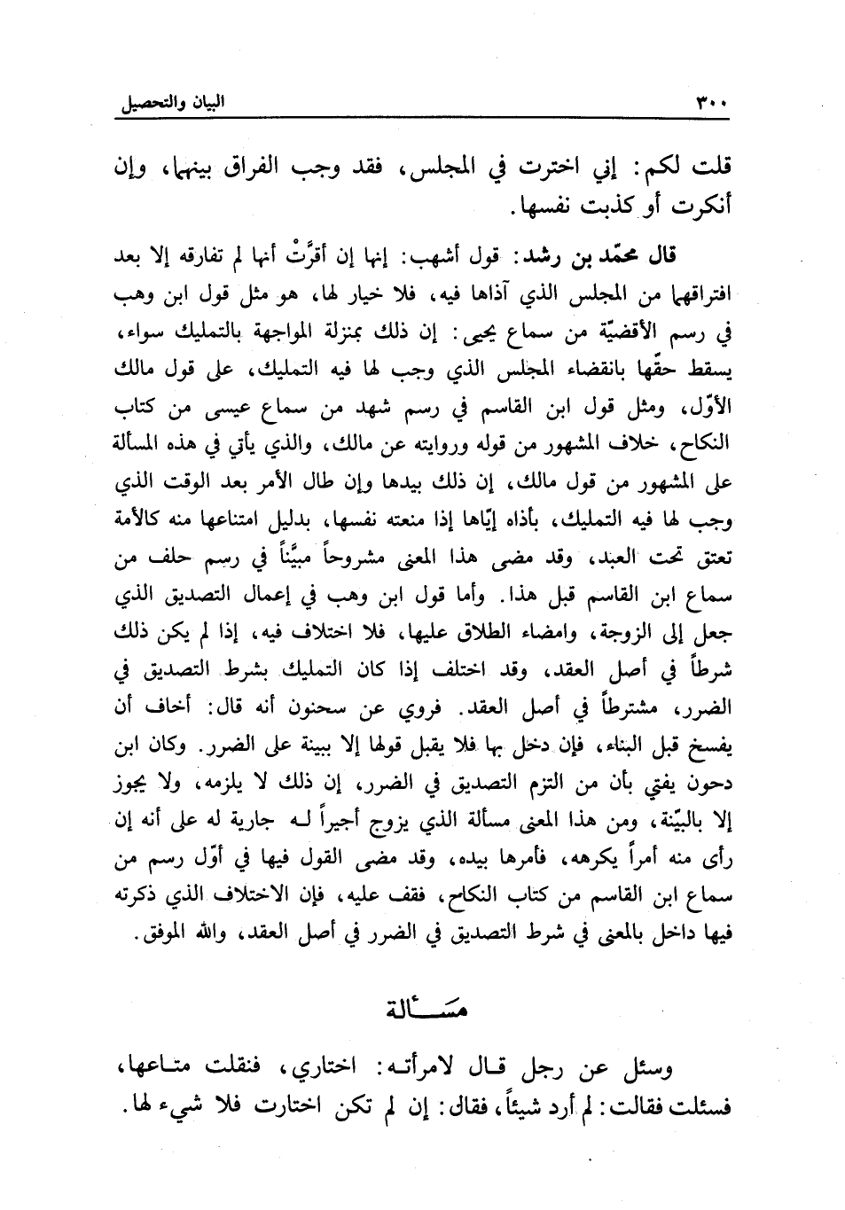 وأما قول ابن وهب في إعمال التصديق الذي جعل إلى الزوجة، وإمضاء الطلاق عليها، فلا اختلاف فيه، إذا لم يكن ذلك شرطا في أصل العقد، وقد اختلف إذا كان التمليك بشرط التصديق في الضرر، مشترطا في أصل العقد.