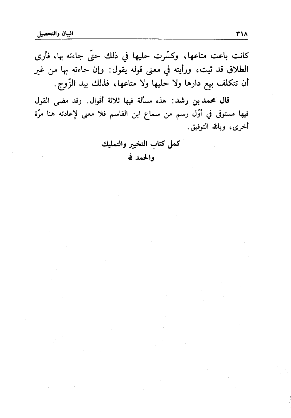 قال محمد بن رشد: هذه مسألة فيها ثلاثة أقوال. وقد مضى القول فيها مستوفى في أول رسم من سماع ابن القاسم فلا معنى لإعادته هنا مرة أخرى، وبالله التوفيق.