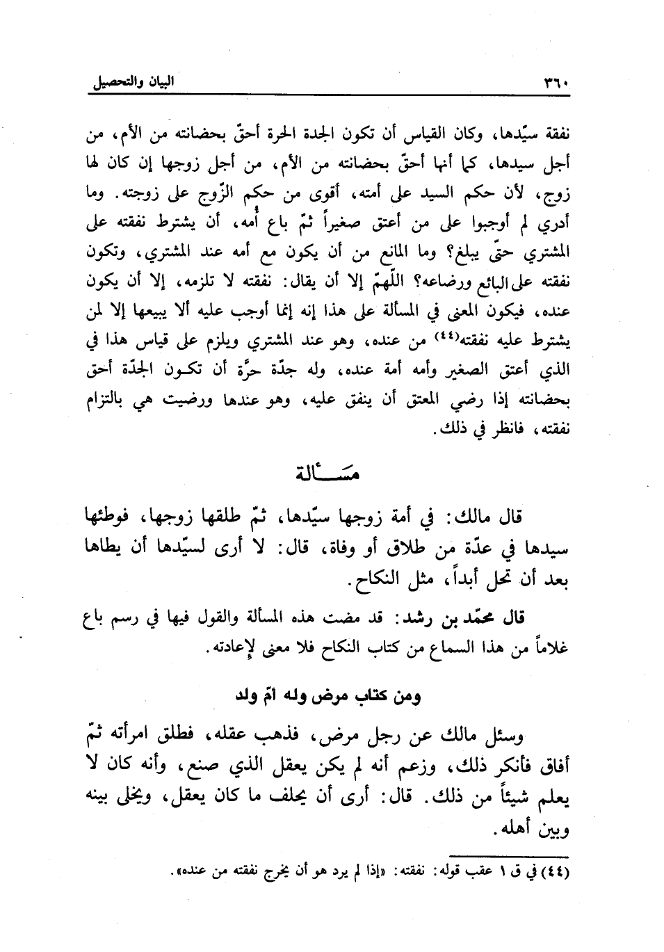 قال محمد بن رشد: قد مضت هذه المسألة والقول فيها في رسم باع غلاما من هذا السماع من كتاب النكاح فلا معنى لإعادته.