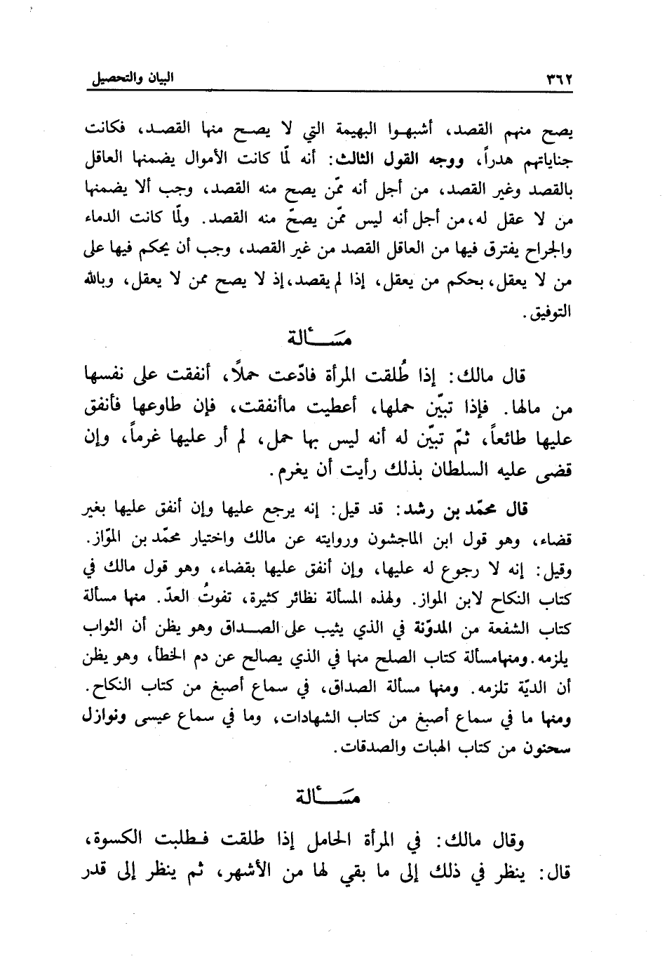 وقيل: إنه لا رجوع له عليها، وإن أنفق عليها بقضاء، وهو قول مالك في كتاب النكاح لابن المواز. ولهذه المسألة نظائر كثيرة، تفوت العد. منها مسألة كتاب الشفعة من المدونة في الذي يثيب على الصداق وهو يظن أن الثواب يلزمه.